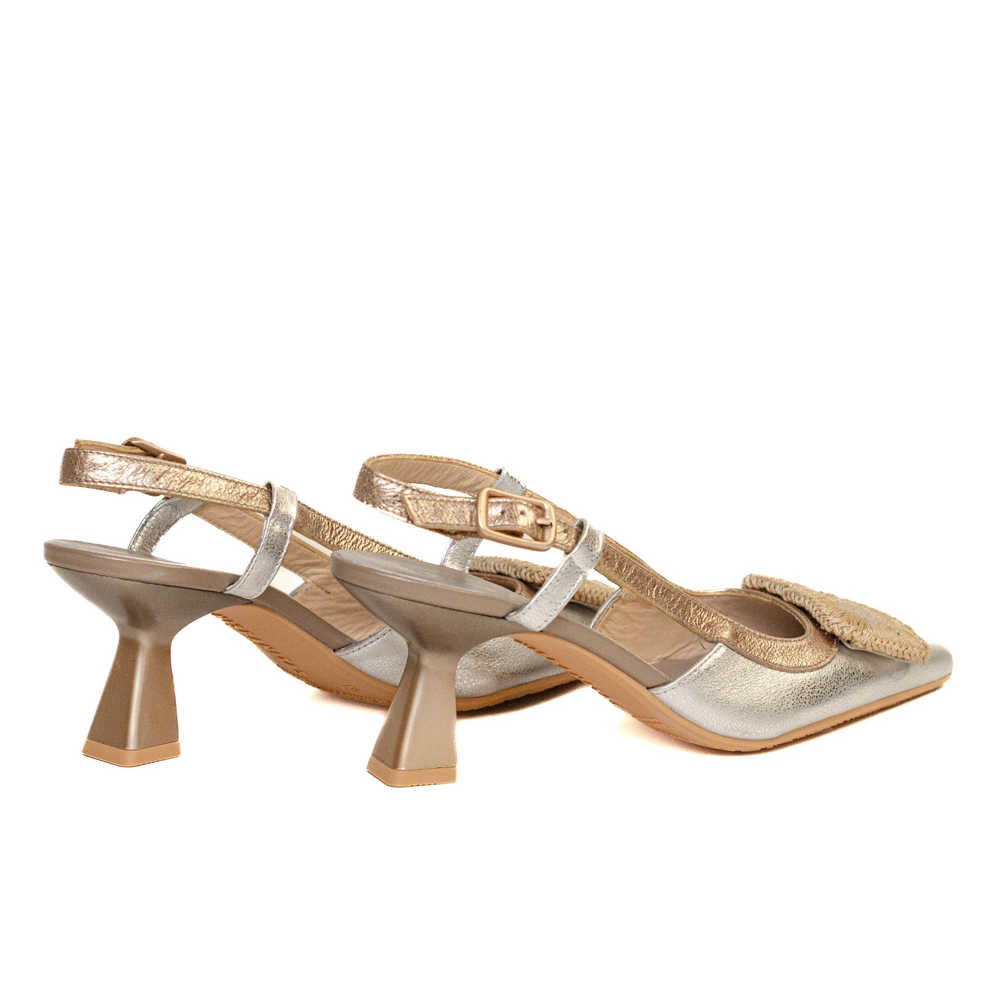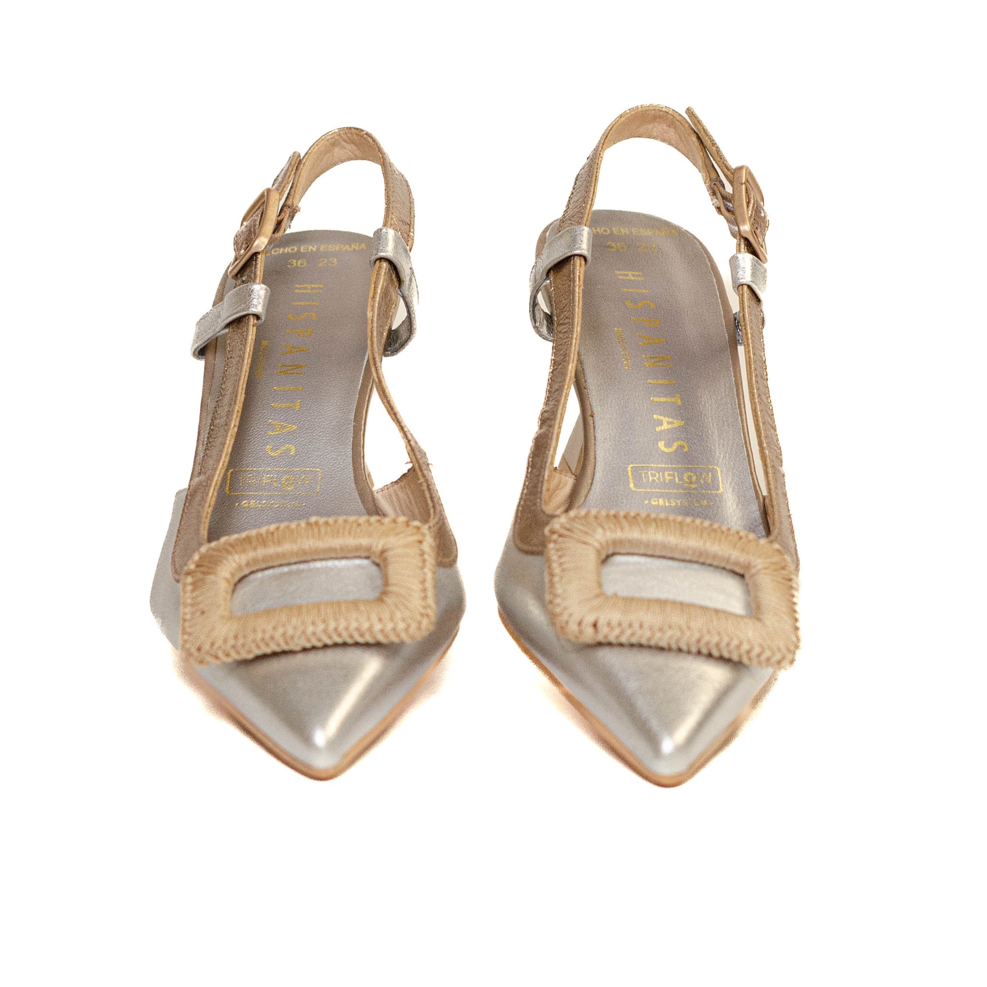 Hispanitas Escorpio, zapatilla destalonada acabado en punta , este diseño incorpora el detalle especial del maxi adorno de hilo trenzado a mano en el empeine y cierre de hebilla en lateral, la tecnología del Triflow genera un efecto acolchó nado en la pisada.