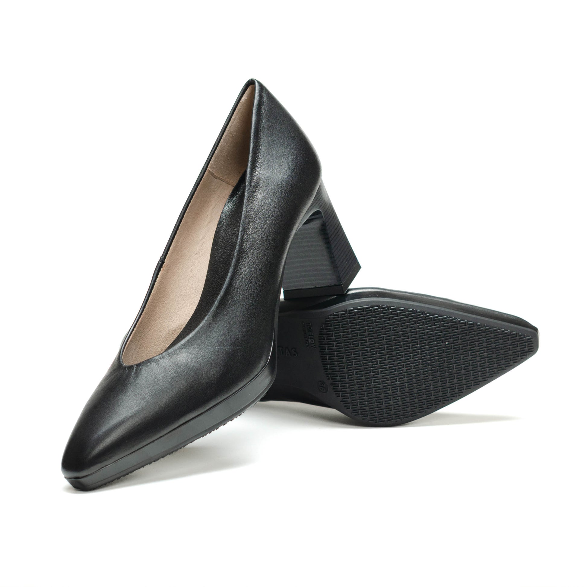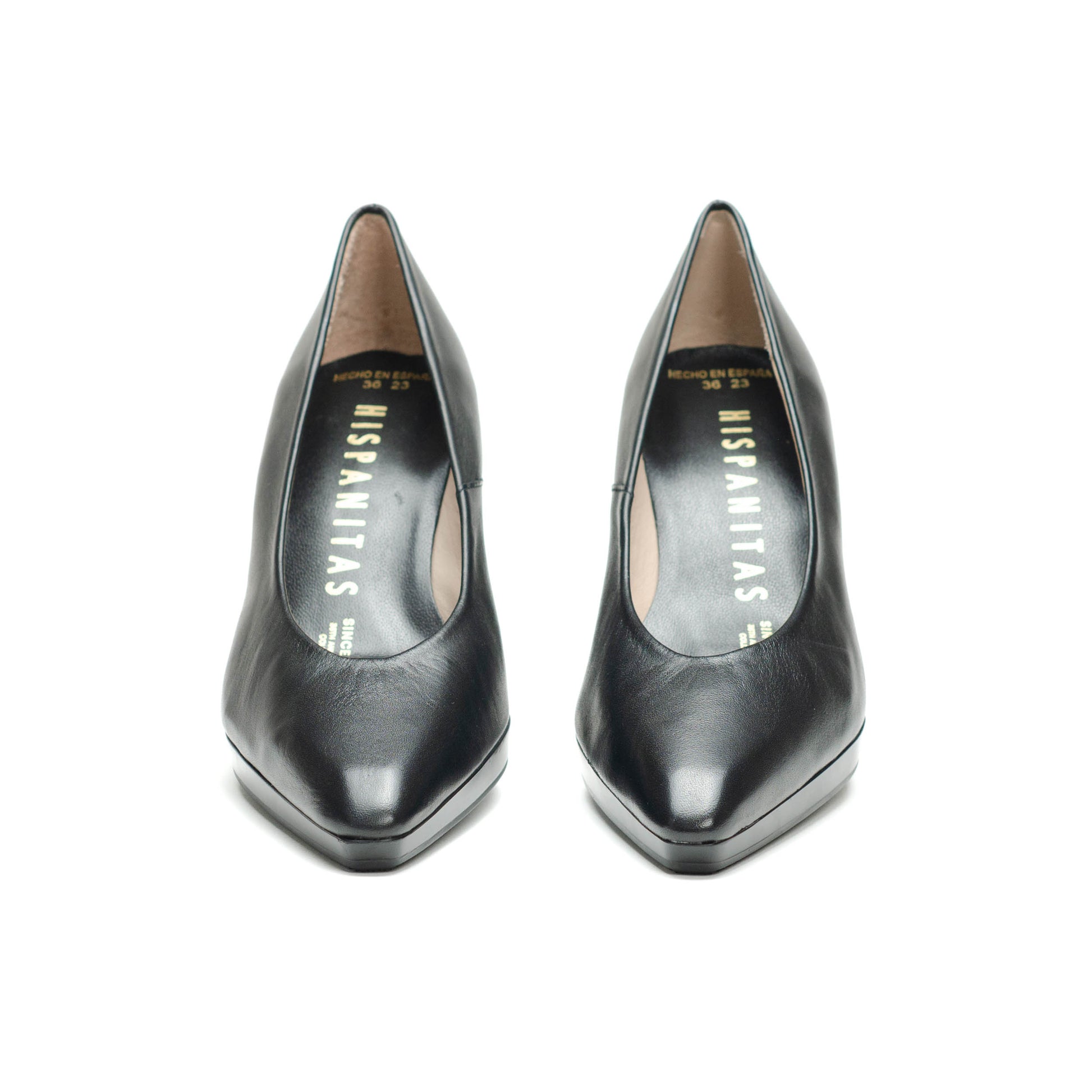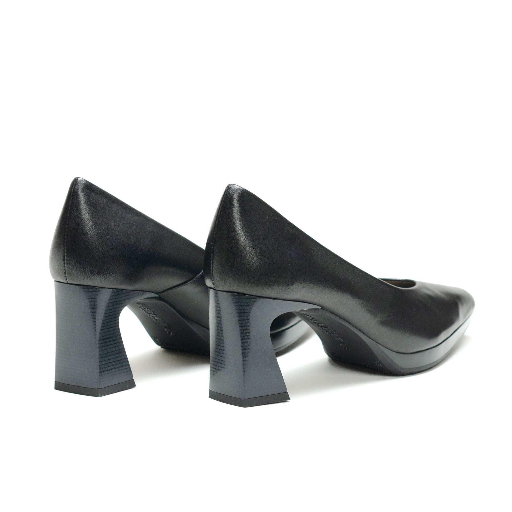 Hispanitas Escorpio, Salón de punta afilada. Ligera plataforma de 1 cm y tacón geométrico cómodo con acabado madera.