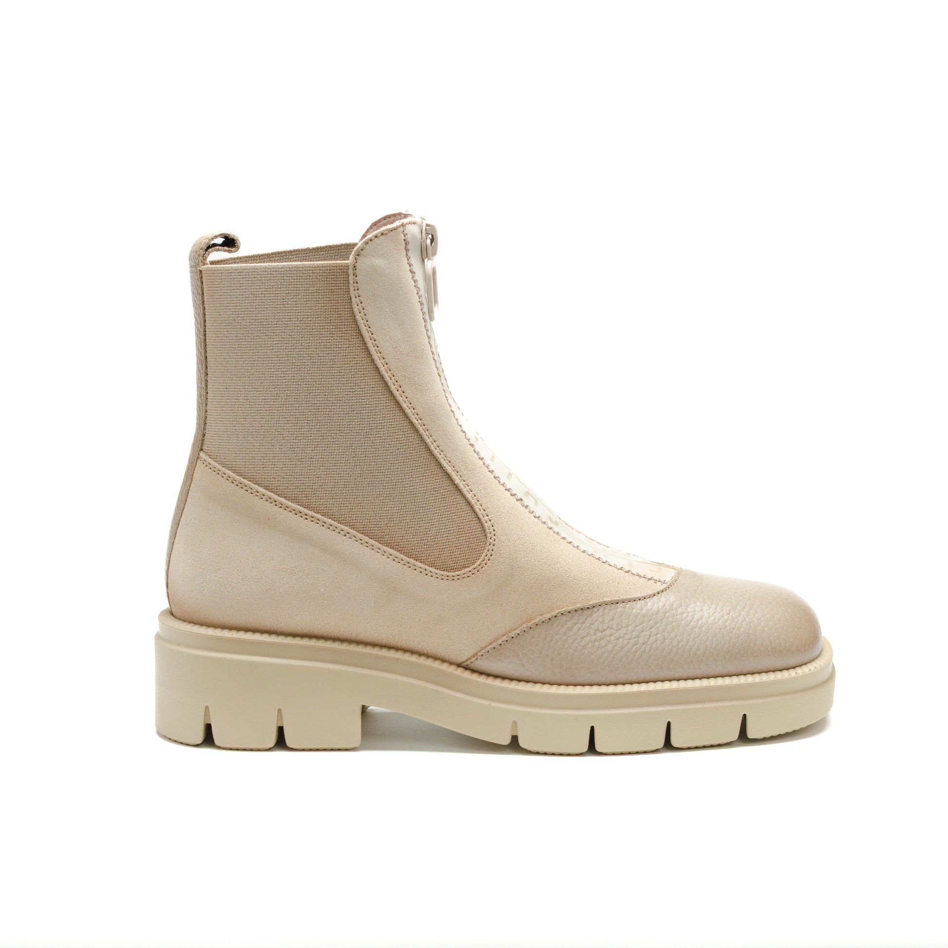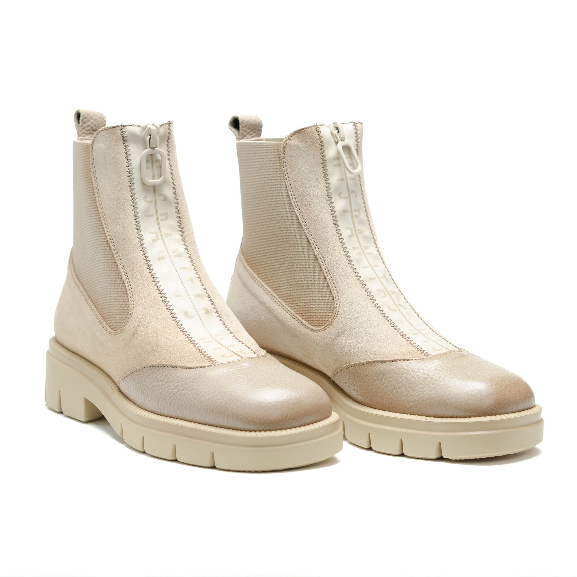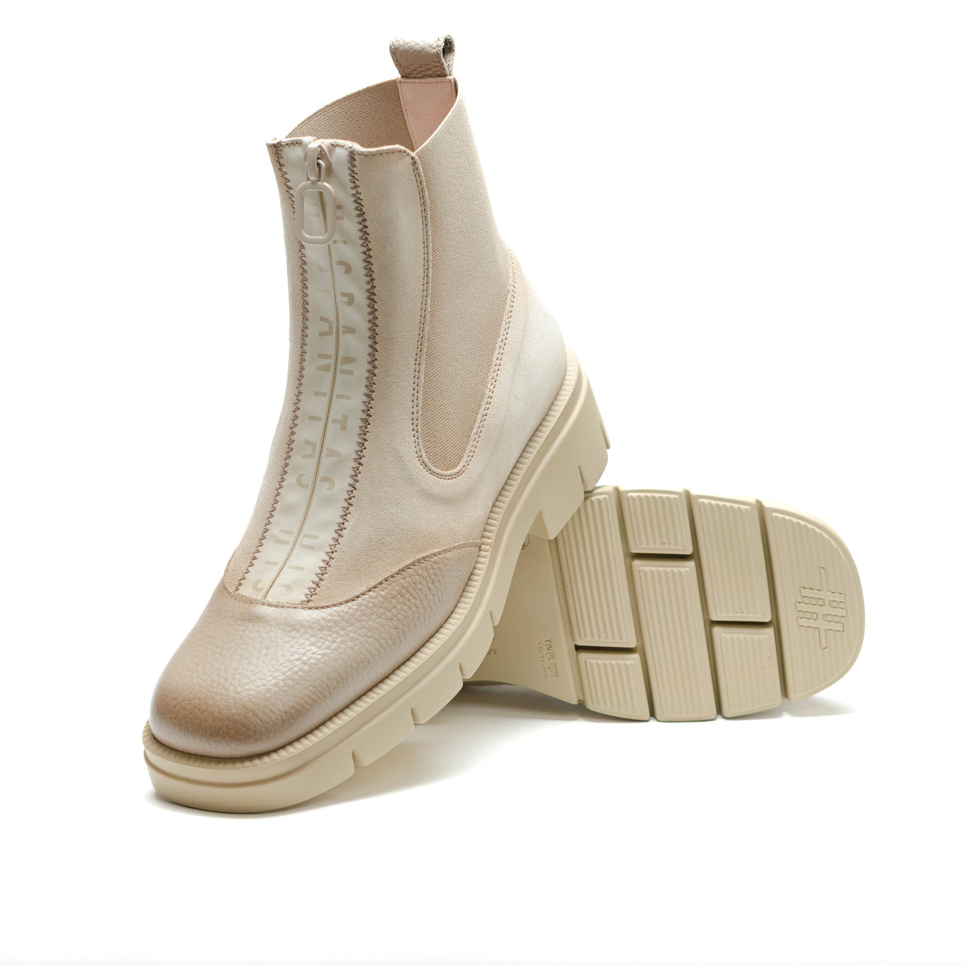 Hispanitas Escorpio, Botín deportivo con cremallera que facilita el calce. Piso de 3 cm compuesto de goma termoplástica. Elaborado en piel combinada con tejido elástico. Forro interior de origen no animal, 100% transpirable y termorregulador. Tecnología Triflow: Triple almohadillado en la zona de la pisada que absorbe los impactos y aporta un efecto acolchado al caminar, incorpora plantilla anatómica extraíble.