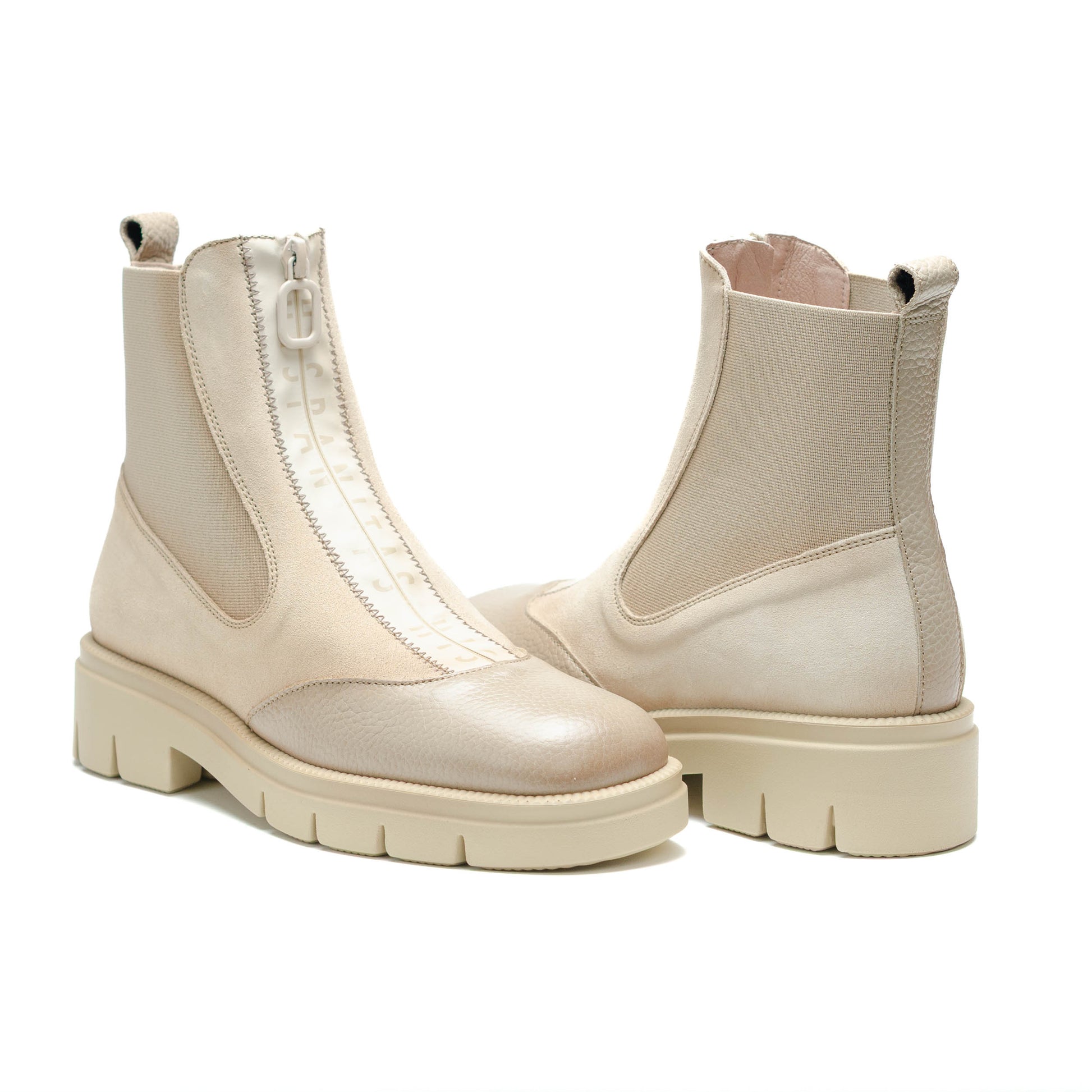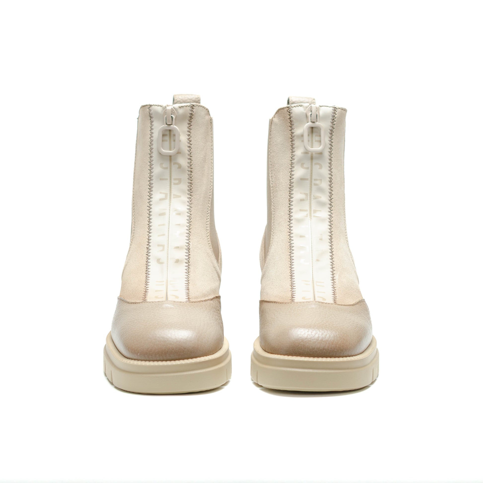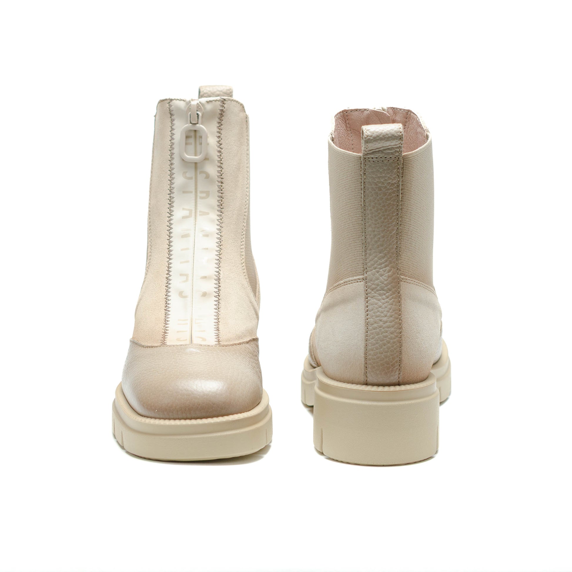 Hispanitas Escorpio, Botín deportivo con cremallera que facilita el calce. Piso de 3 cm compuesto de goma termoplástica. Elaborado en piel combinada con tejido elástico. Forro interior de origen no animal, 100% transpirable y termorregulador. Tecnología Triflow: Triple almohadillado en la zona de la pisada que absorbe los impactos y aporta un efecto acolchado al caminar, incorpora plantilla anatómica extraíble.