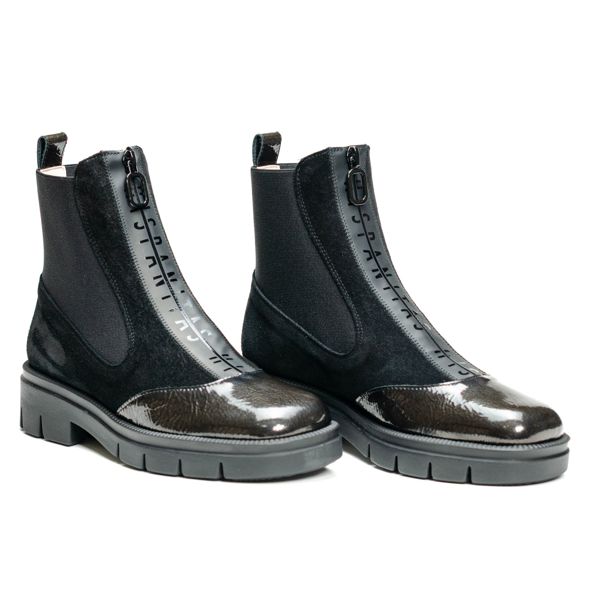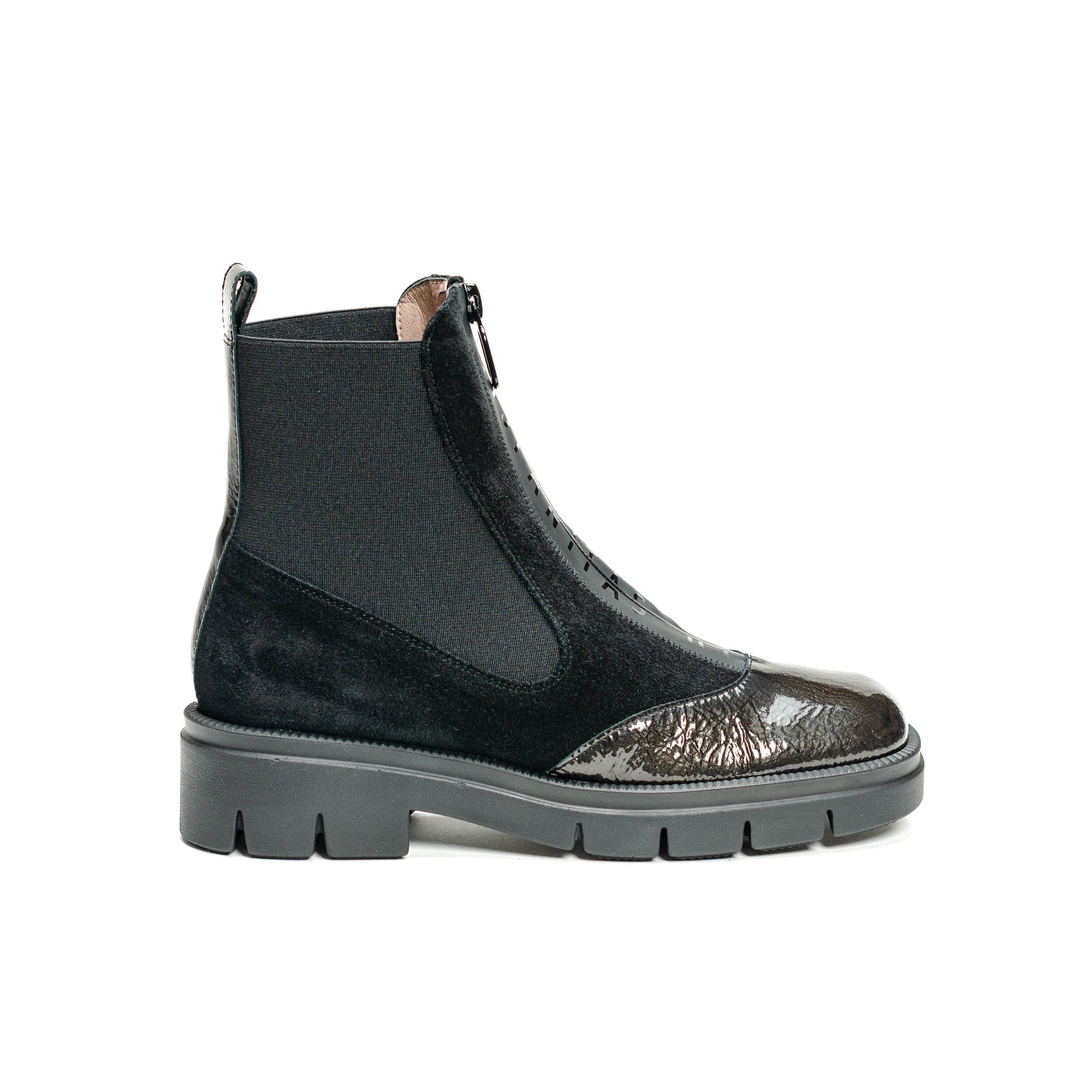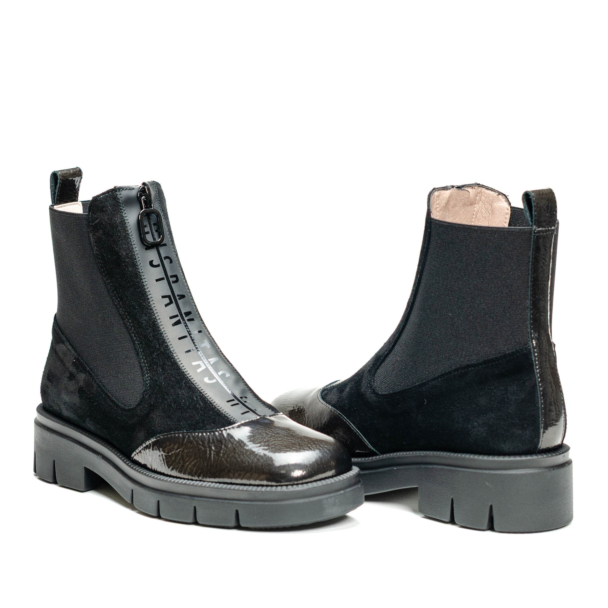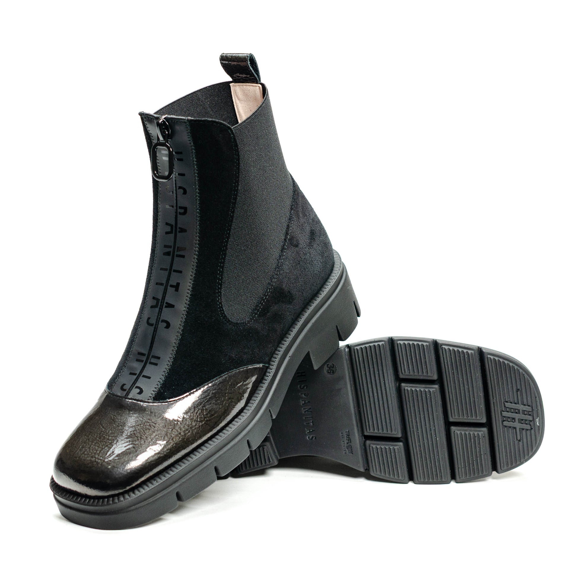 Hispanitas Escorpio, Botín deportivo con cremallera que facilita el calce. Piso de 3 cm compuesto de goma termoplástica. Elaborado en piel combinada con tejido elástico. Forro interior de origen no animal, 100% transpirable y termorregulador. Tecnología Triflow: Triple almohadillado en la zona de la pisada que absorbe los impactos y aporta un efecto acolchado al caminar. incorpora plantilla anatómica extraíble.