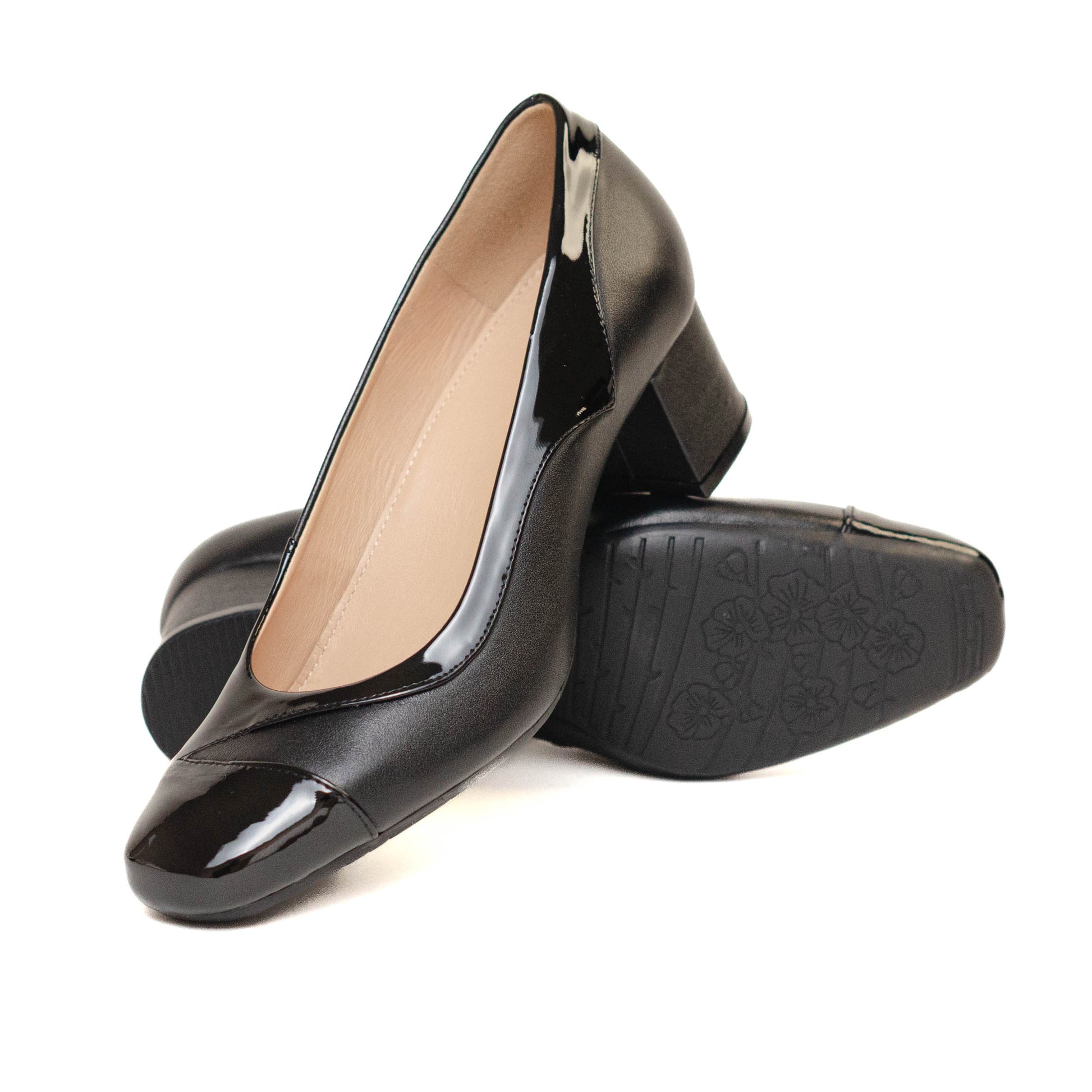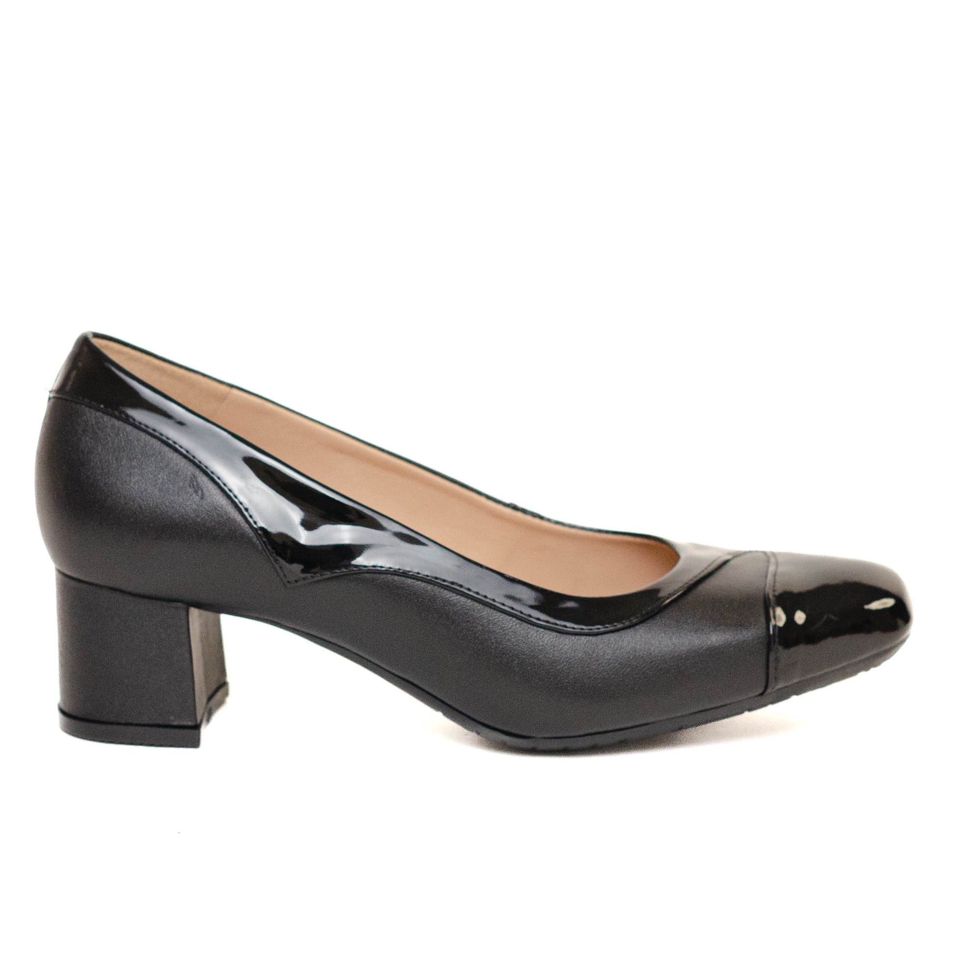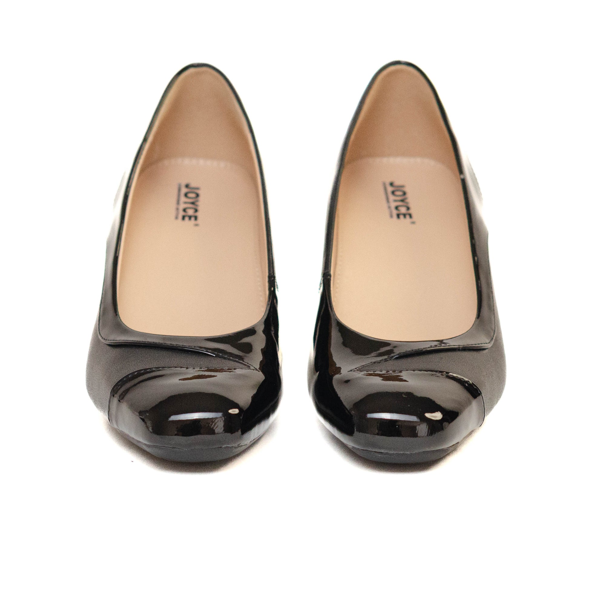Joyce Escorpio, Los detalles femeninos y elementos vanguardistas en piel y charol, se reúnen armoniosamente en esta distinguida zapatilla. Forro y plantilla de piel. Tacón forrado de 5 cm de altura.
