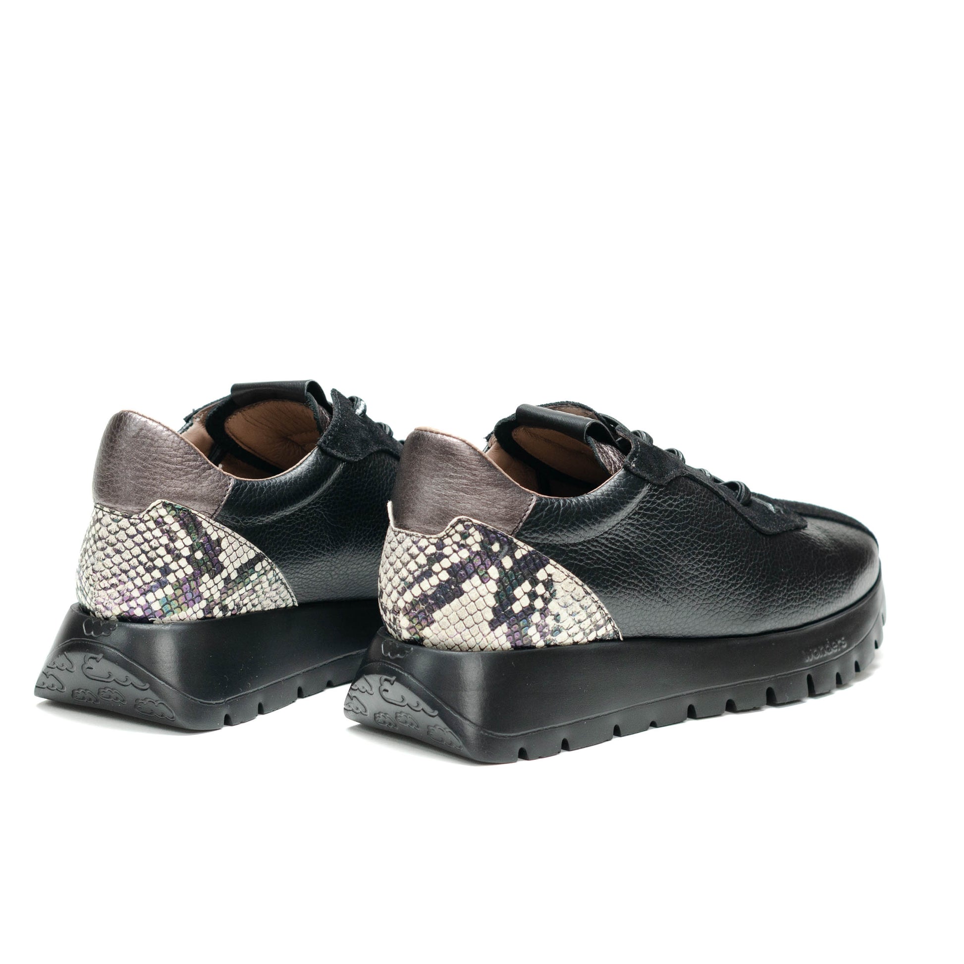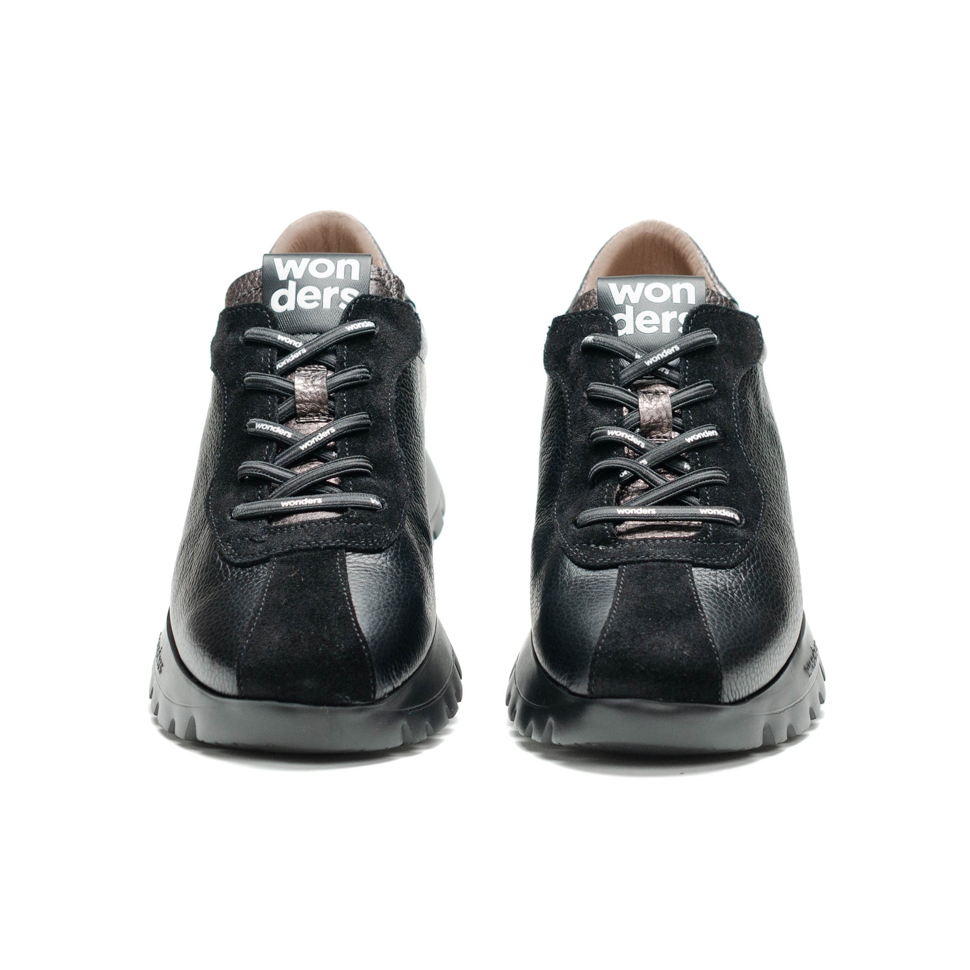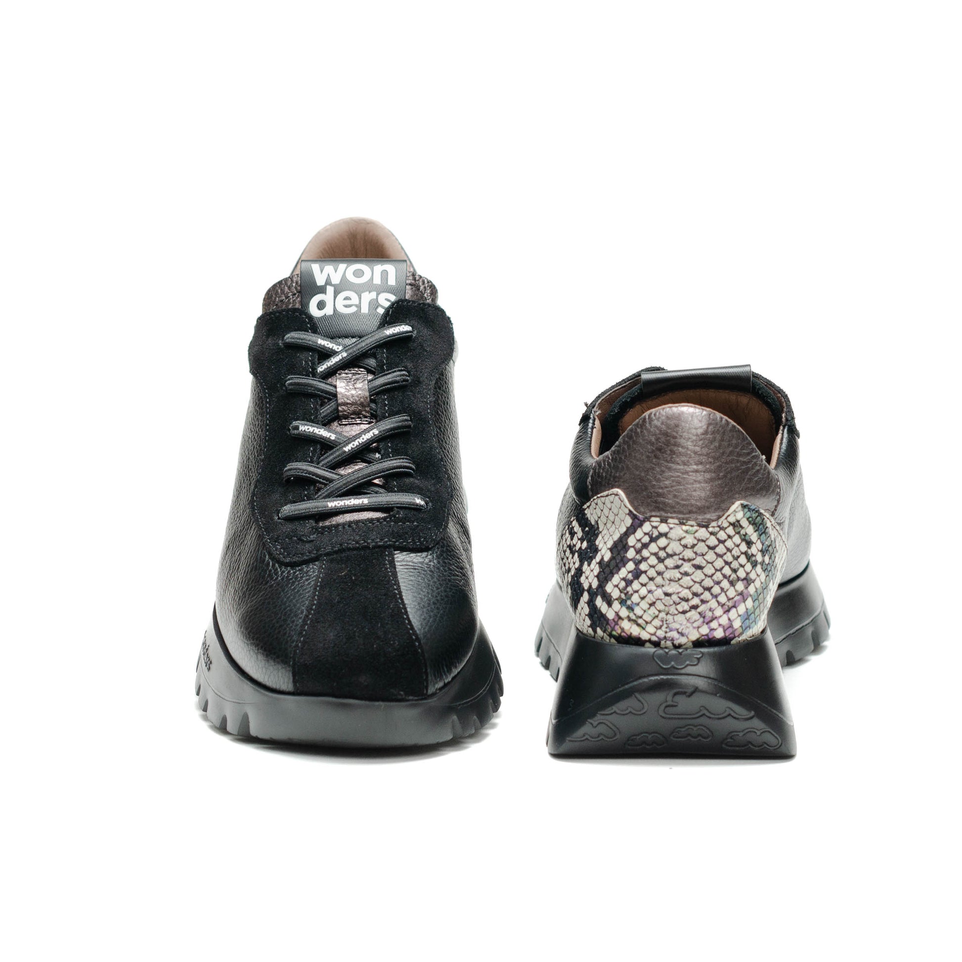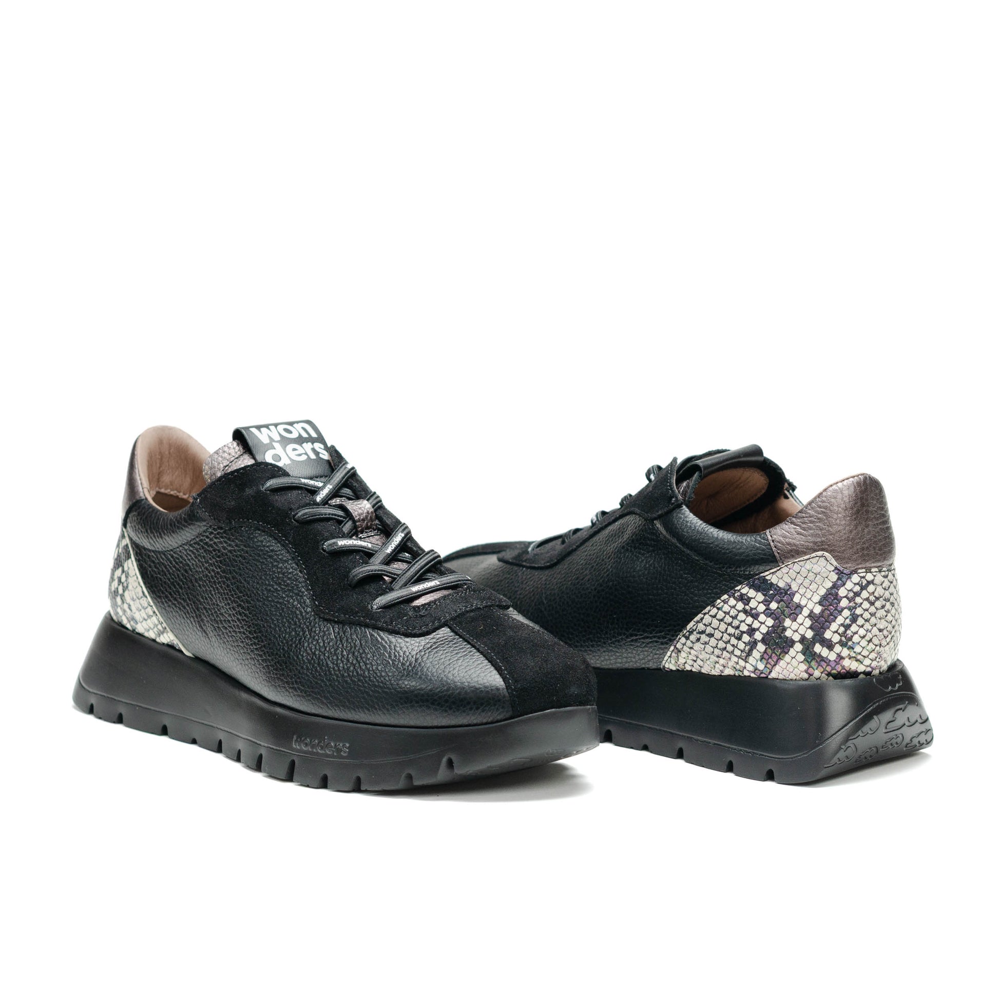 Wonders Escorpio, Tenis fabricados en combinación de materiales en tonos negro, metalicos y piel grabada reptil. Este modelo con diseño, cómodo y a la moda. Su ajuste es mediante cordones elásticos brandeados que aportan practicidad y estilo. Su suela, creada con tecnología WondersFly™ by XL EXTRALIGHT®, garantiza una ligereza excepcional y un confort extraordinario. Además, la plantilla interior extraíble de MemoryGel se adapta perfectamente al pie, proporcionando comodidad en cada paso. Prepárate para sentir la sensación #YesWeFly. Wonders apuesta por una fabricación responsable avalada por LEATHERWORKINGGROUP.