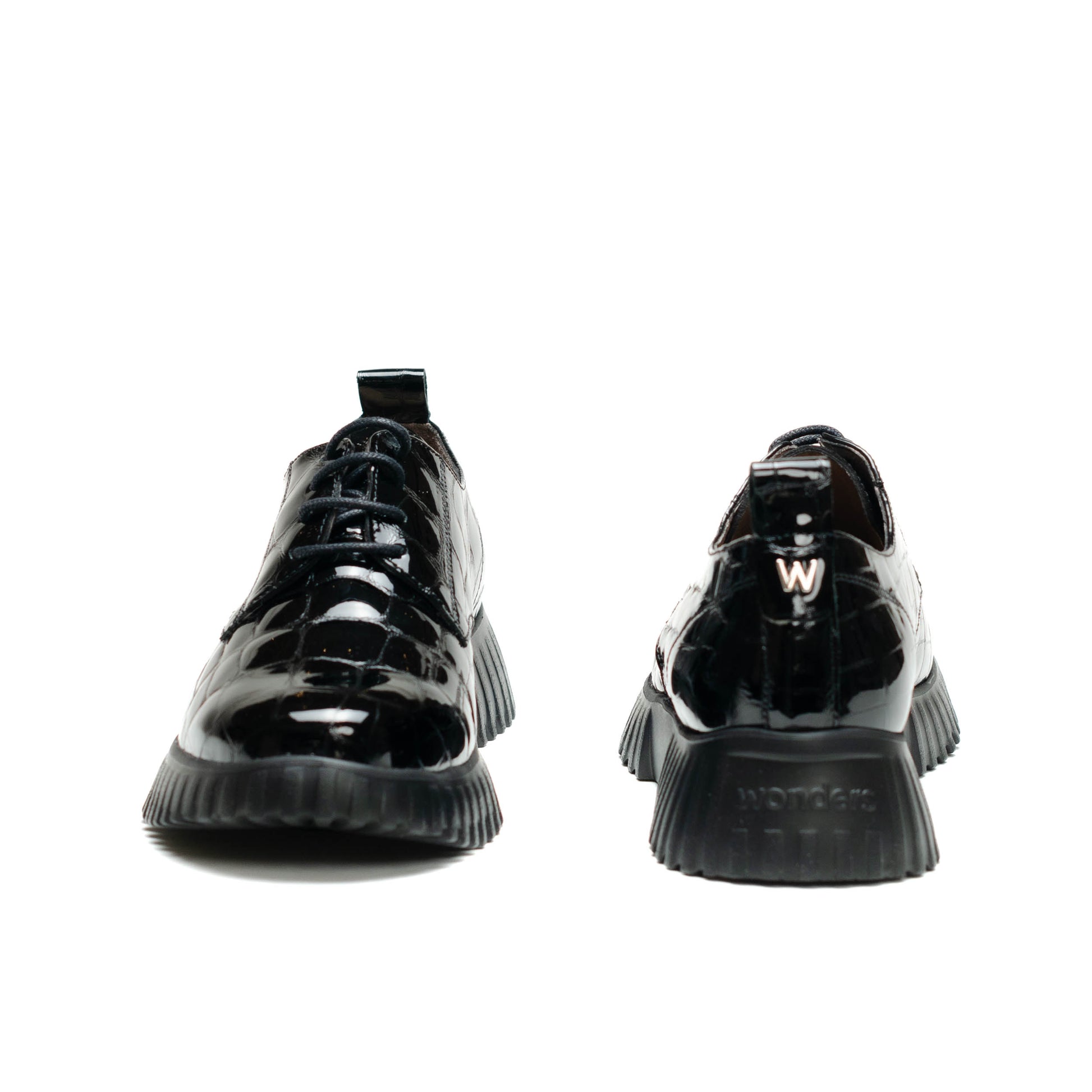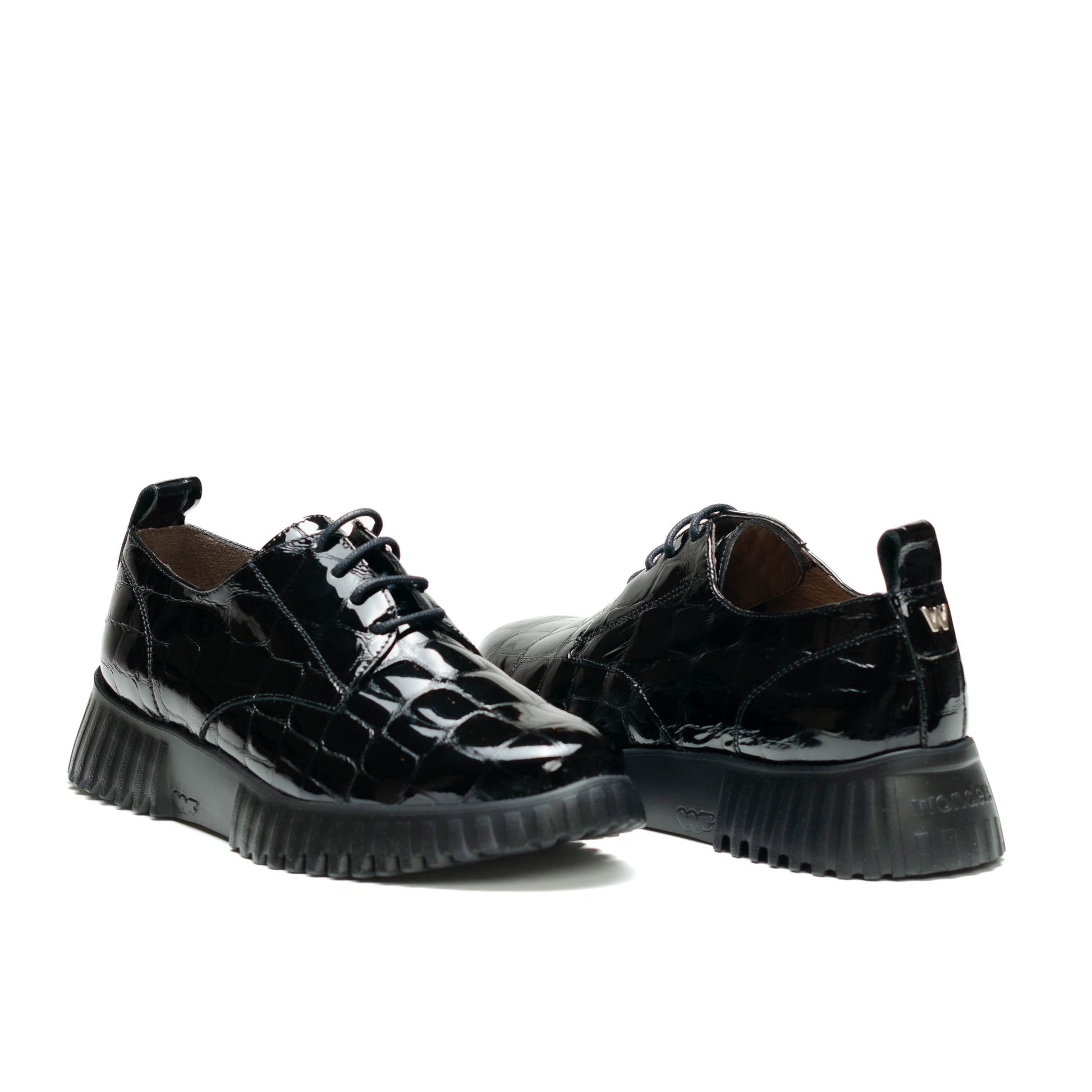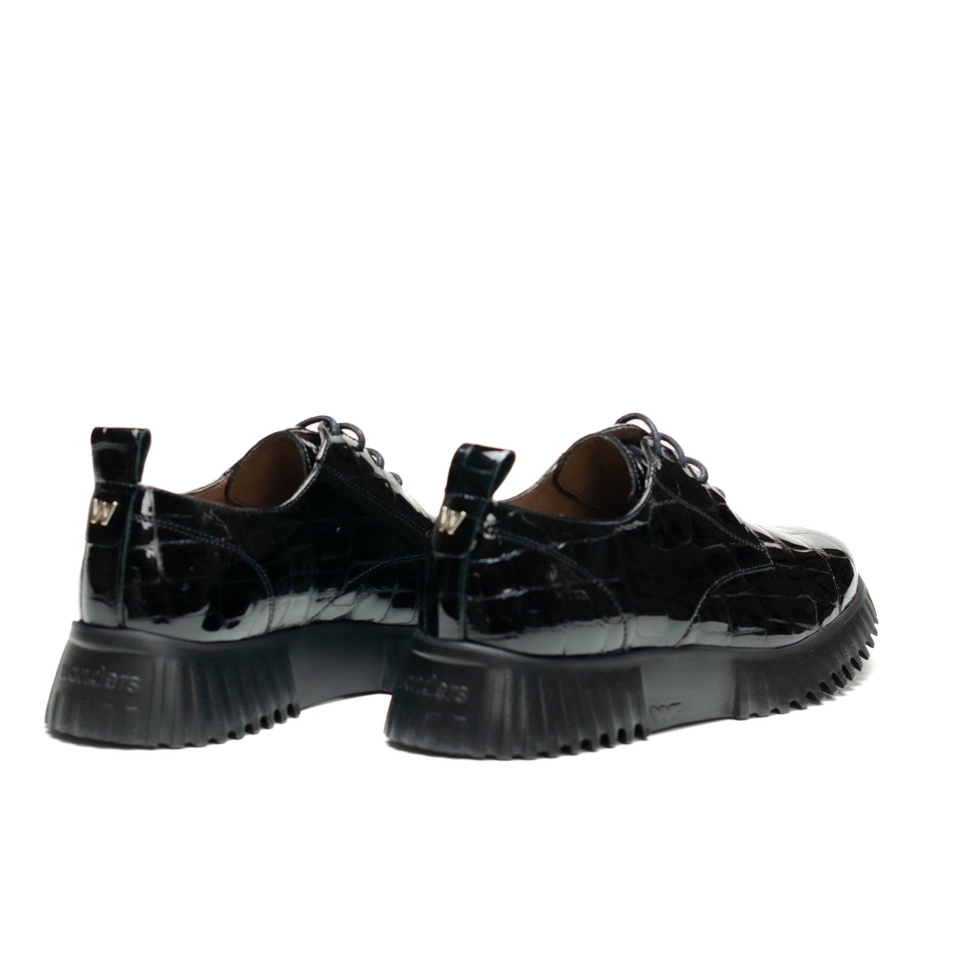 Bluchers FLEXFLY 01 fabricados en piel charol negra. Su diseño con inspiración clásica en los bluchers ha sido reinventado con un toque deportivo y a la moda. Su punta es redonda y su cierre es mediante cordones clásicos. Su suela, creada con tecnología WondersFly™ by XL EXTRALIGHT®, garantiza una ligereza excepcional y un confort extraordinario. Además, la plantilla interior extraíble de MemoryGel se adapta perfectamente al pie, proporcionando comodidad en cada paso. Prepárate para sentir la sensación #YesWeFly. Wonders apuesta por una fabricación responsable avalada por LEATHERWORKINGGROUP.