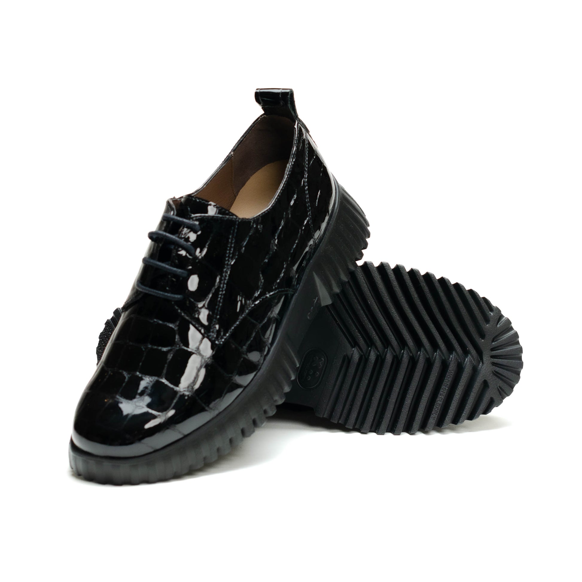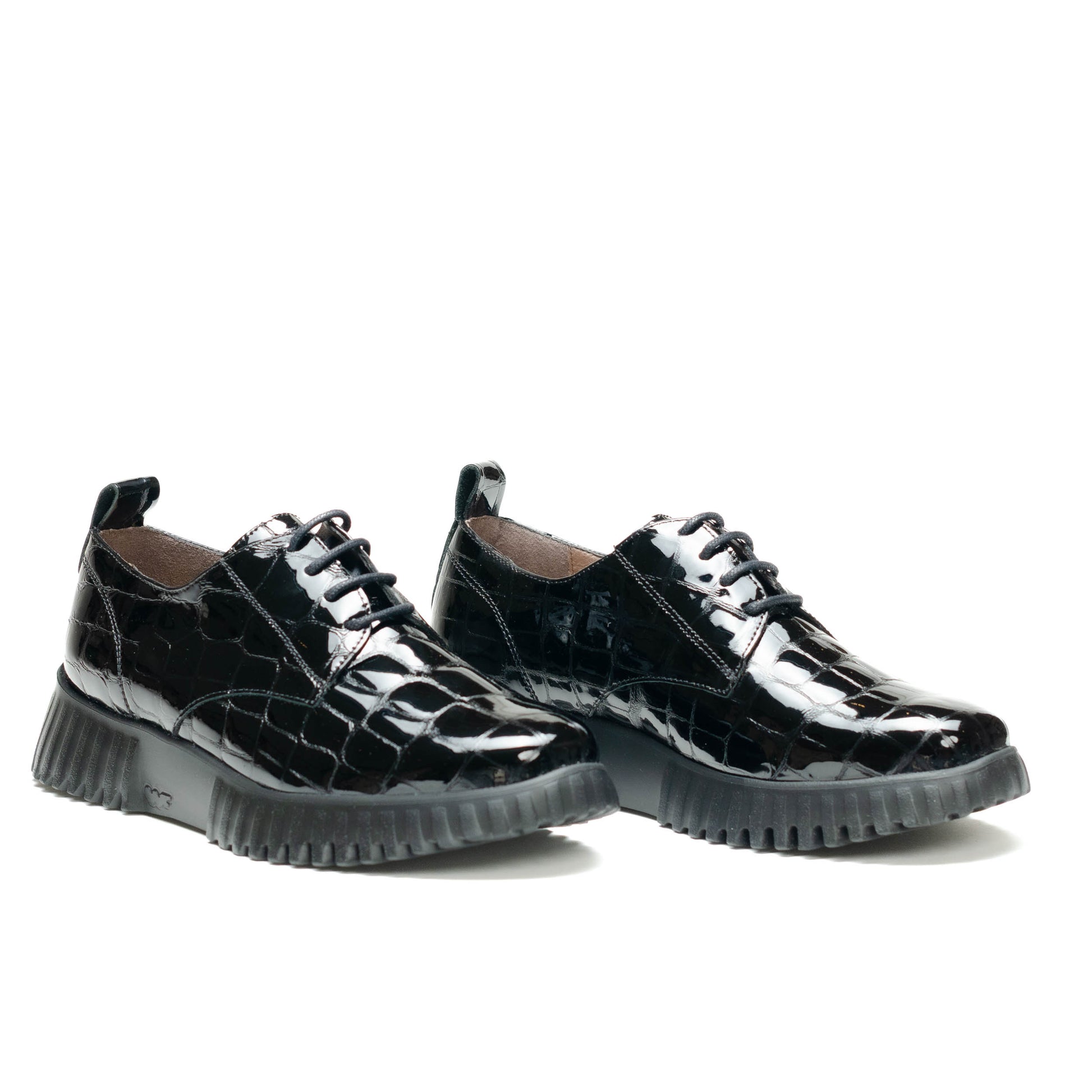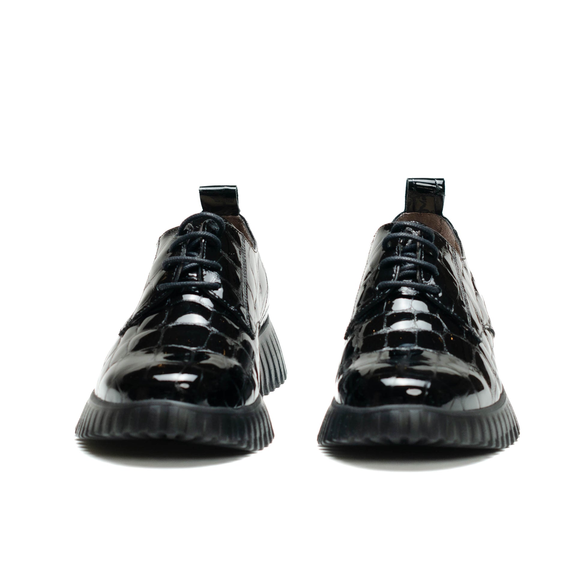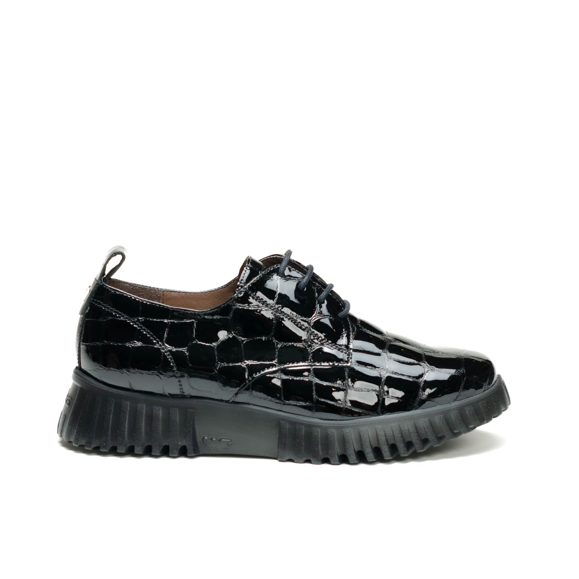 Bluchers FLEXFLY 01 fabricados en piel charol negra. Su diseño con inspiración clásica en los bluchers ha sido reinventado con un toque deportivo y a la moda. Su punta es redonda y su cierre es mediante cordones clásicos. Su suela, creada con tecnología WondersFly™ by XL EXTRALIGHT®, garantiza una ligereza excepcional y un confort extraordinario. Además, la plantilla interior extraíble de MemoryGel se adapta perfectamente al pie, proporcionando comodidad en cada paso. Prepárate para sentir la sensación #YesWeFly. Wonders apuesta por una fabricación responsable avalada por LEATHERWORKINGGROUP.