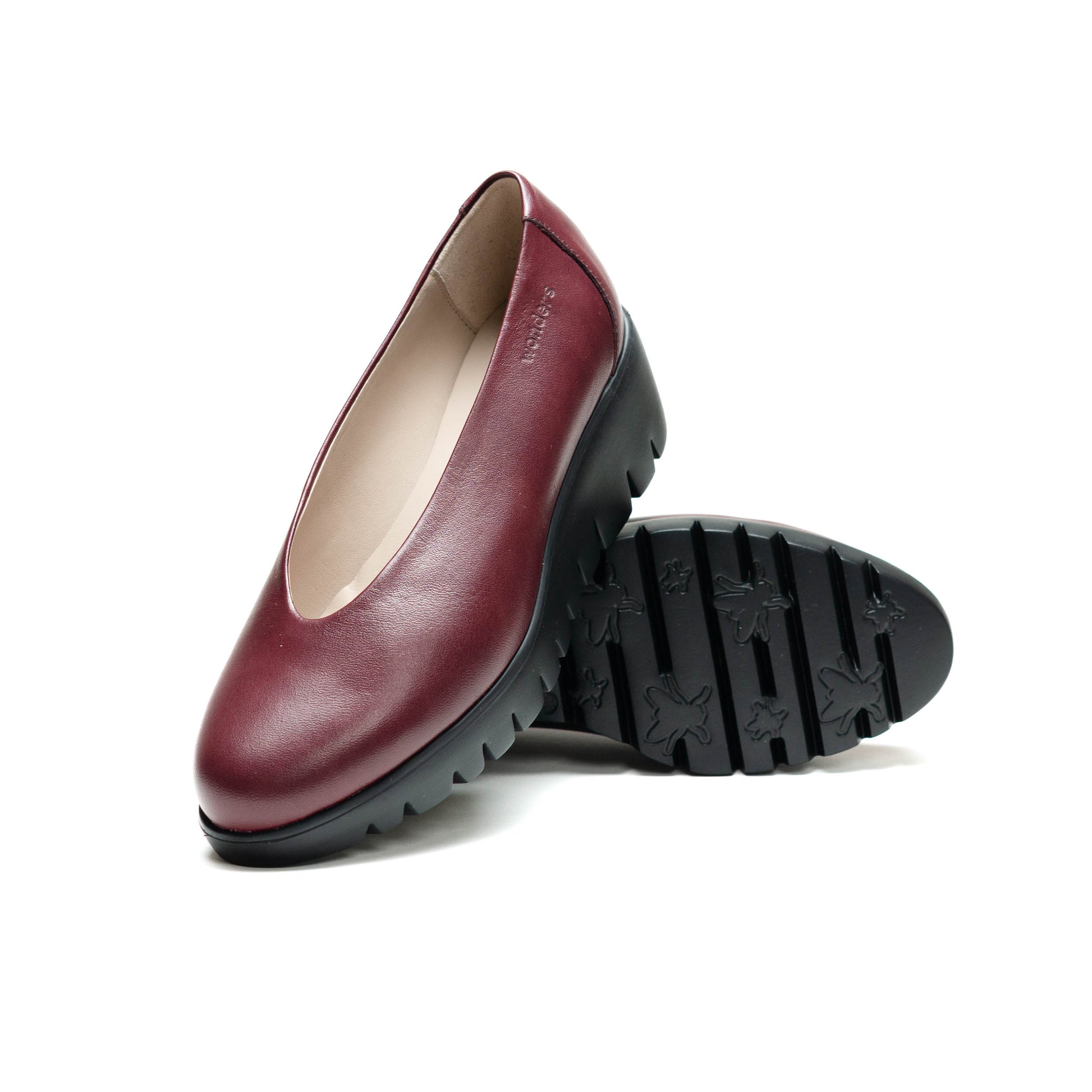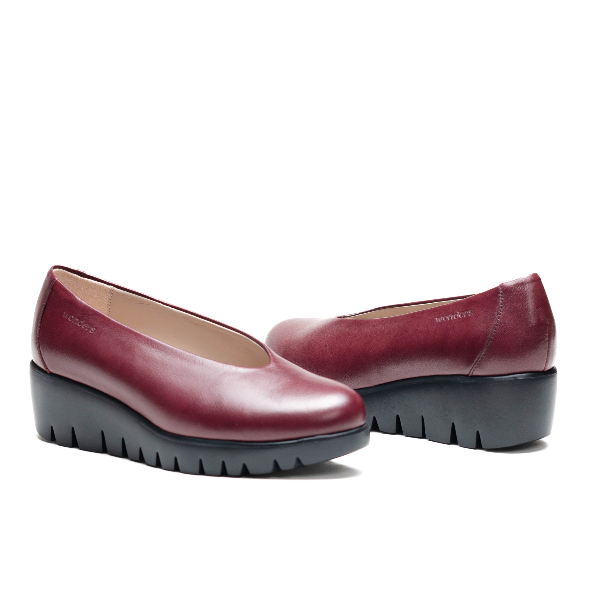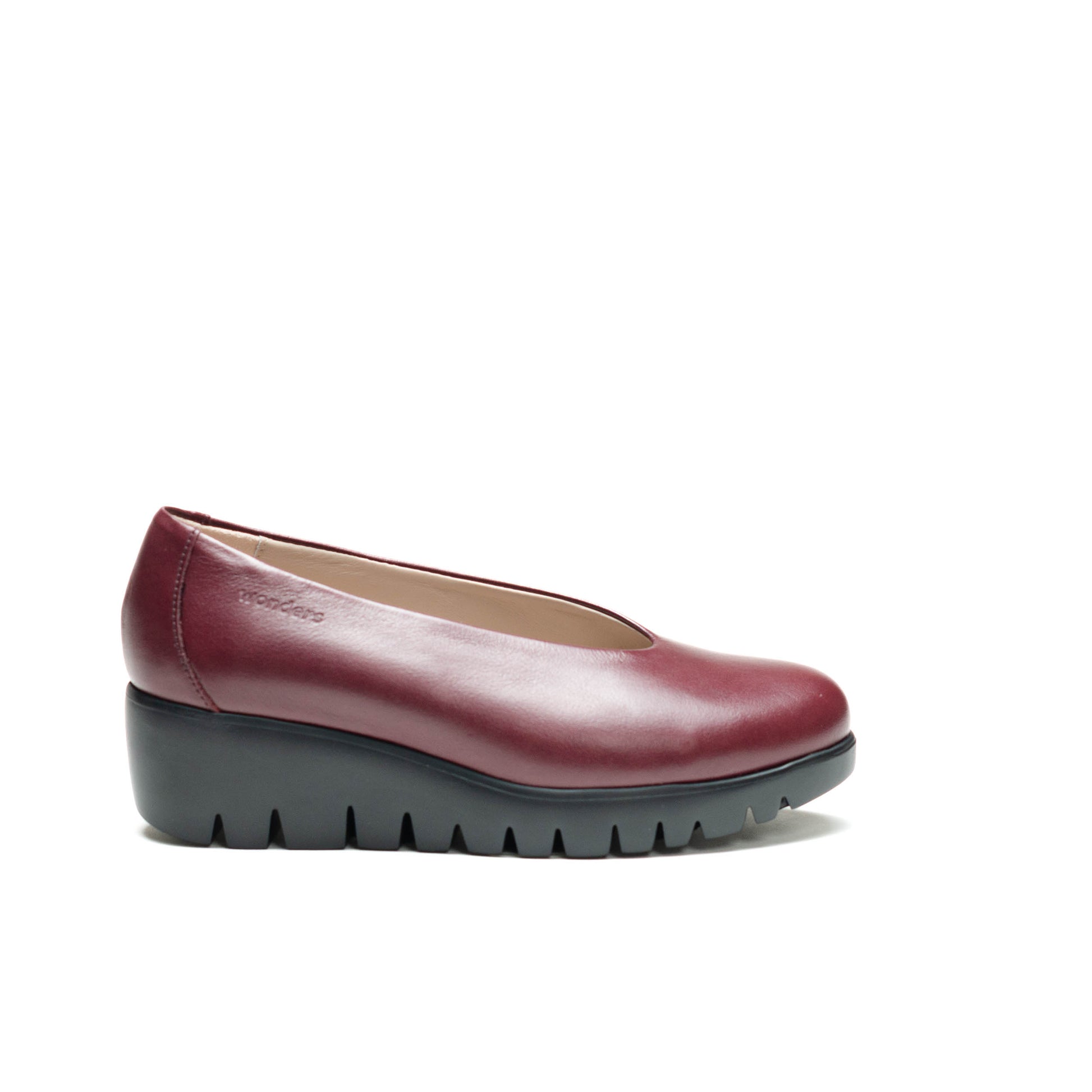 Wonders Escorpio, calzado confeccionado en piel vino. Modelo clásico de escote alto y redondo. La suela, desarrollada con tecnología WondersFly, asegura ligereza y confort en cada pisada. Además, la plantilla interior extraíble de MemoryGel se adapta perfectamente al pie, ofreciendo una experiencia de comodidad incomparable.