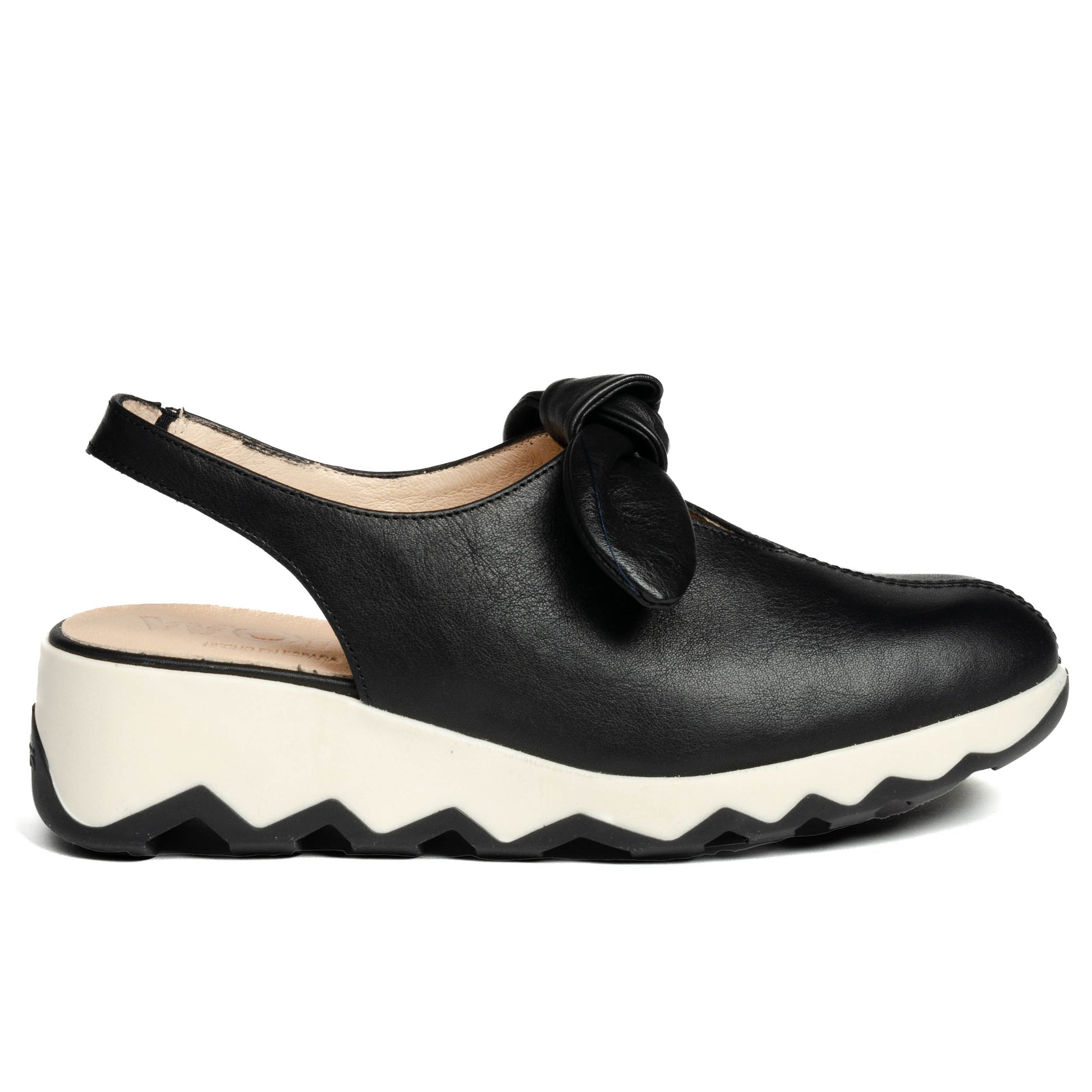 Wonders Escorpio, zapatos destalonado fabricados en piel color negro. Este modelo tiene una plataforma de 5 cm en su parte más alta. El diseño actual y atemporal destaca por su delicado lazo en la parte delantera y un elástico en la tira trasera que asegura un ajuste perfecto. Su suela dentada con acabado bicolor, desarrollada con tecnología EvoLight, proporciona ligereza y confort,. Su suela desarrollada con la tecnología WondersFly garantiza ligereza y confort. Combinado con la plantilla interior de MemoryGel, asegura una comodidad excepcional en cada paso.