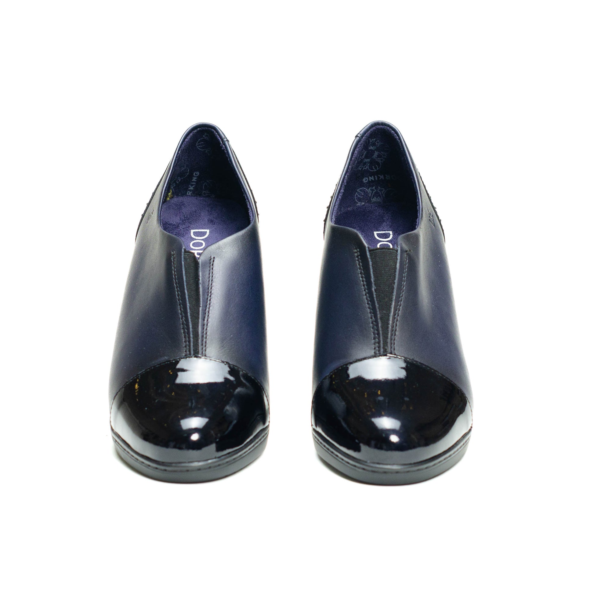 Dorking Escorpio, Medio Botin elaborado en piel azul. Puntas almendradas con tacones cuadrados, añade un toque de elegancia a tu outfit sin sacrificar la comodidad. Tu modelo atemporal favorito, combinará desde con jeans, vestidos sencillos o conjuntos para ocasiones especiales. Su versatilidad lo convierte en el complemento clave para cualquier mujer que busque un estilo sofisticado y delicado.