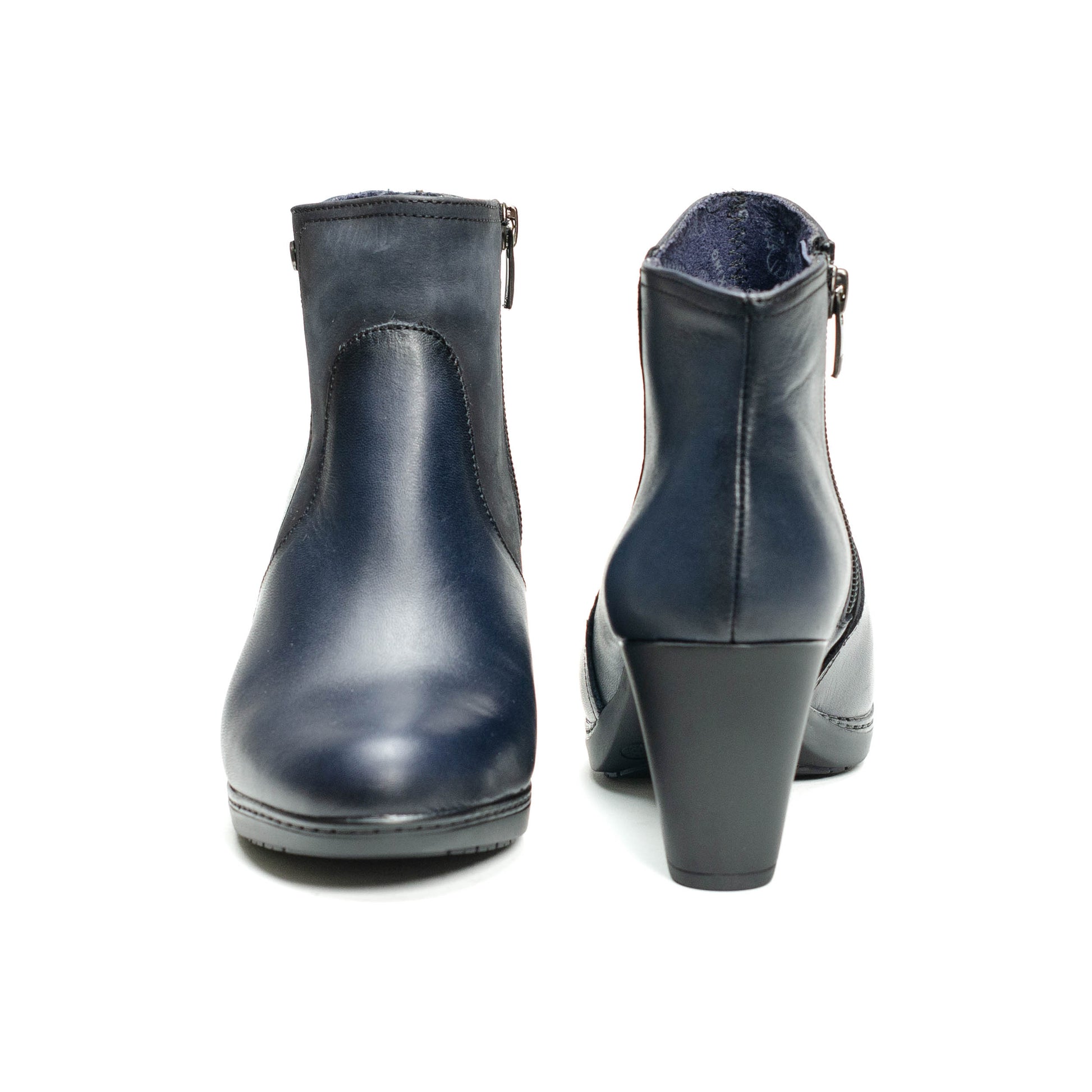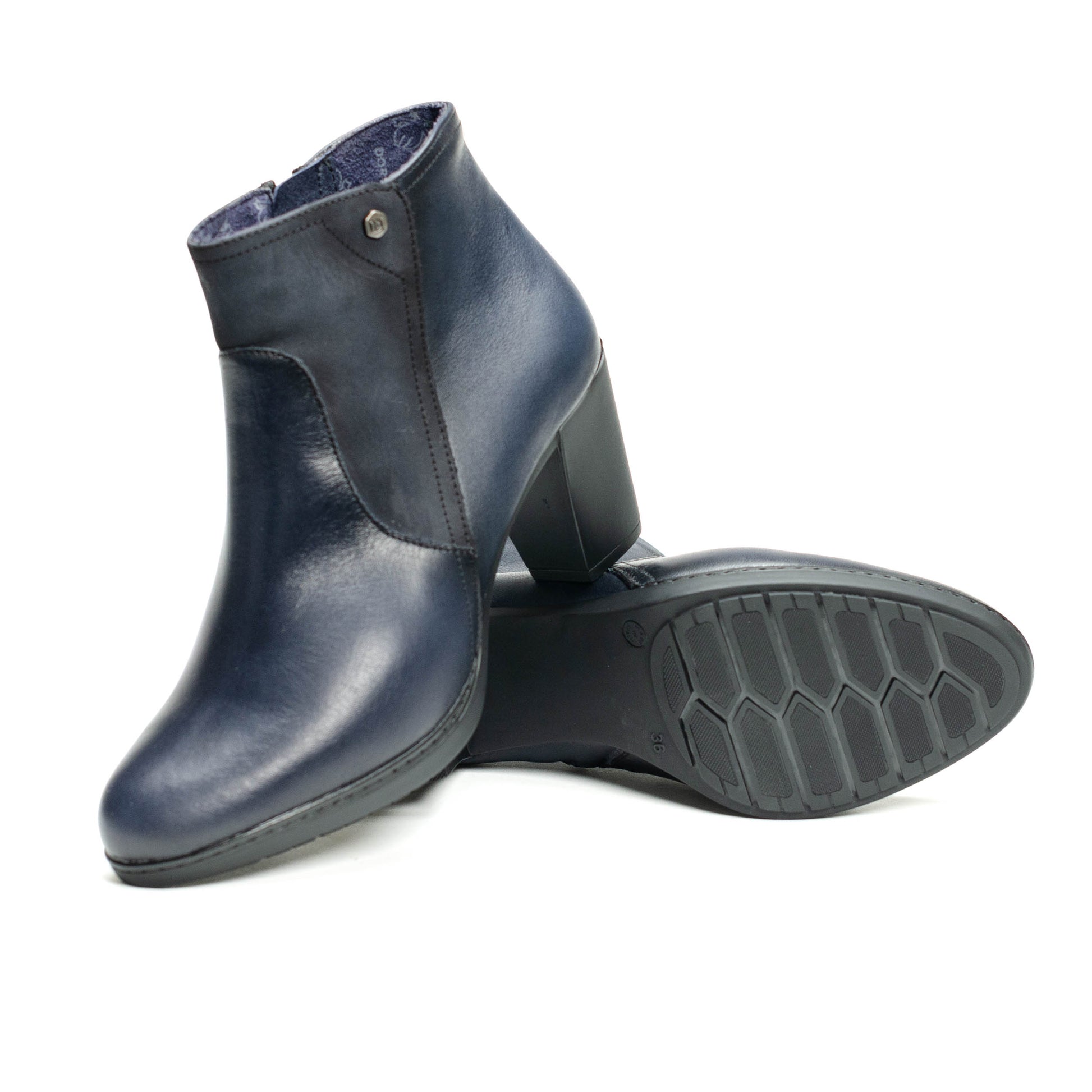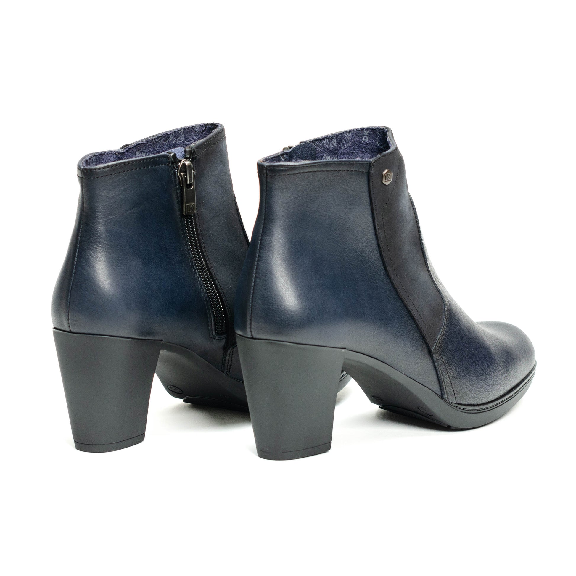 Dorking Escorpio, Botín de piel lisa azul, con tacón alto. Lleva un pequeño tache en la parte superior del lateral, con el logo de Dorking. Su suela es de goma y su sistema de cierre es a través de cremallera. Descubre el equilibrio perfecto entre estilo y comodidad. Estos botines, fabricados en España con materiales de la mas alta calidad son ideales para la mujer moderna que busca elegancia y practicidad en su dìa a dìa.
