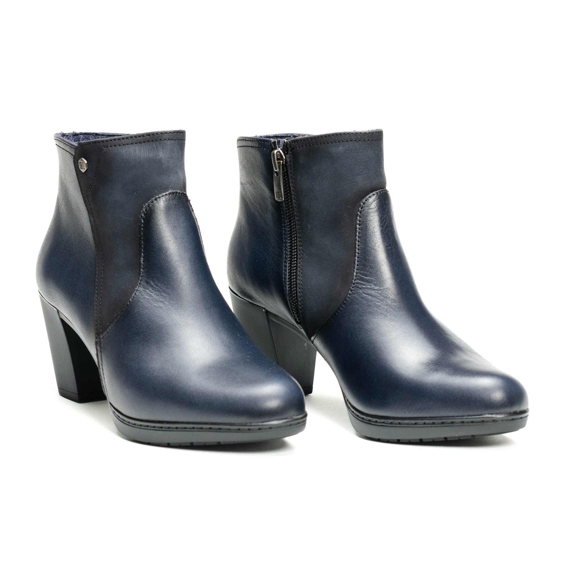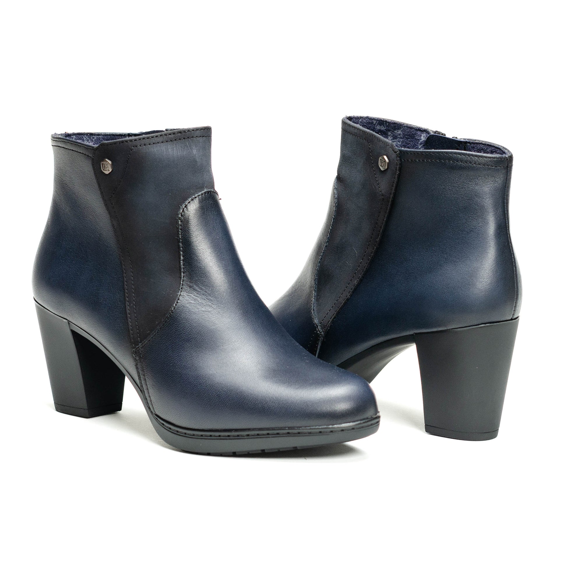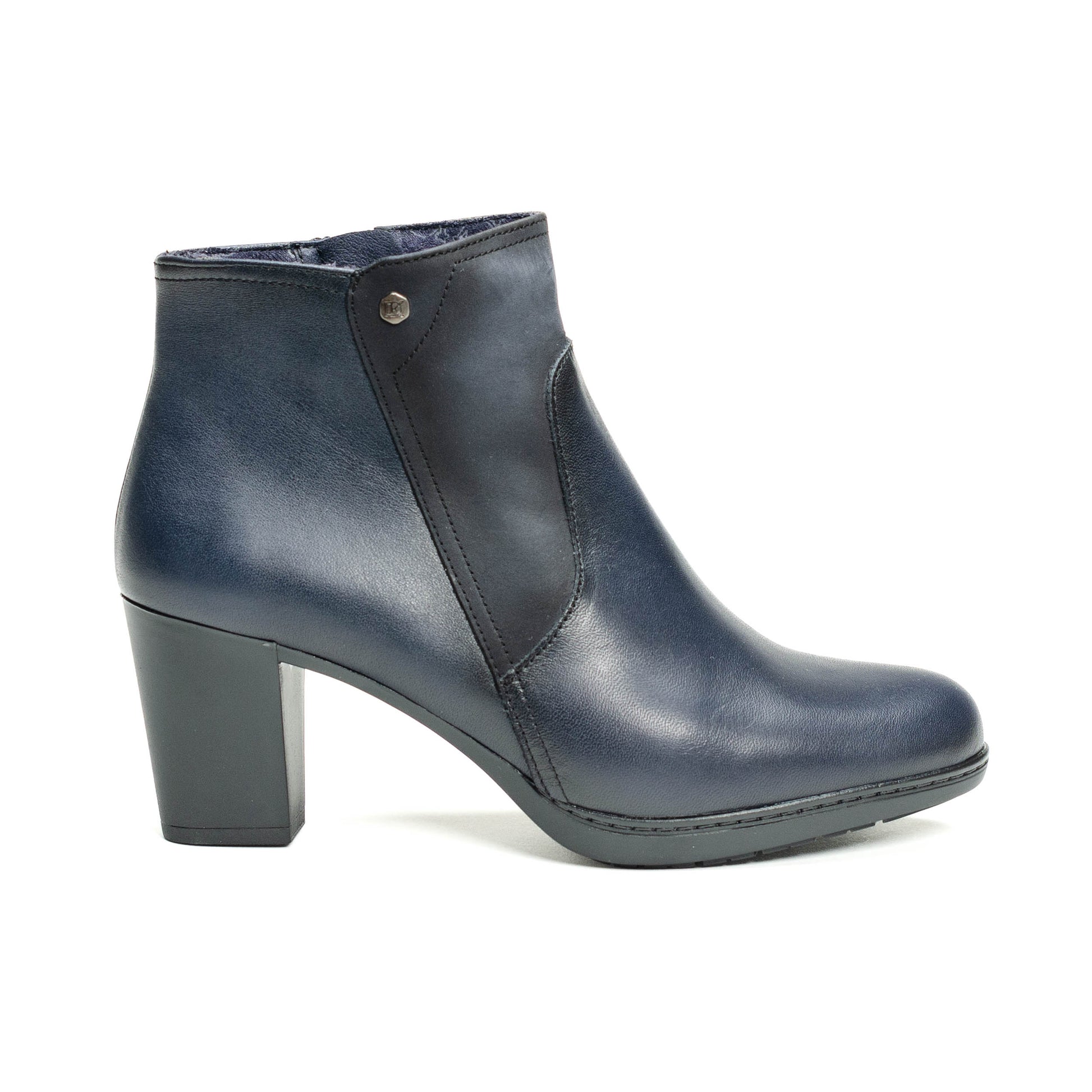 Dorking Escorpio, Botín de piel lisa azul, con tacón alto. Lleva un pequeño tache en la parte superior del lateral, con el logo de Dorking. Su suela es de goma y su sistema de cierre es a través de cremallera. Descubre el equilibrio perfecto entre estilo y comodidad. Estos botines, fabricados en España con materiales de la mas alta calidad son ideales para la mujer moderna que busca elegancia y practicidad en su dìa a dìa.