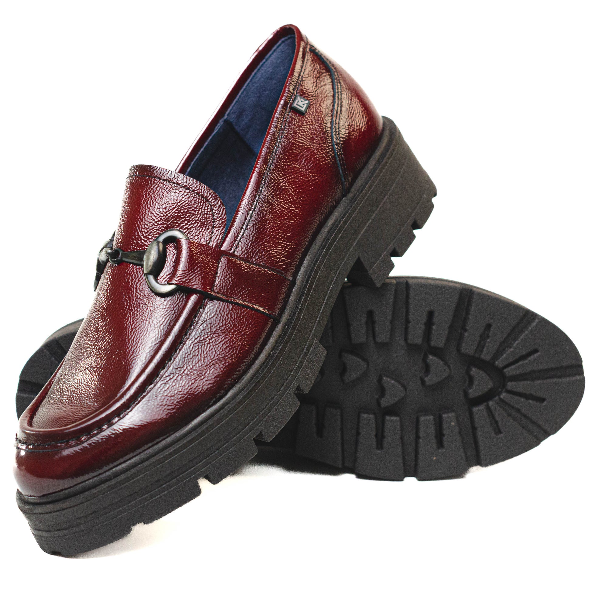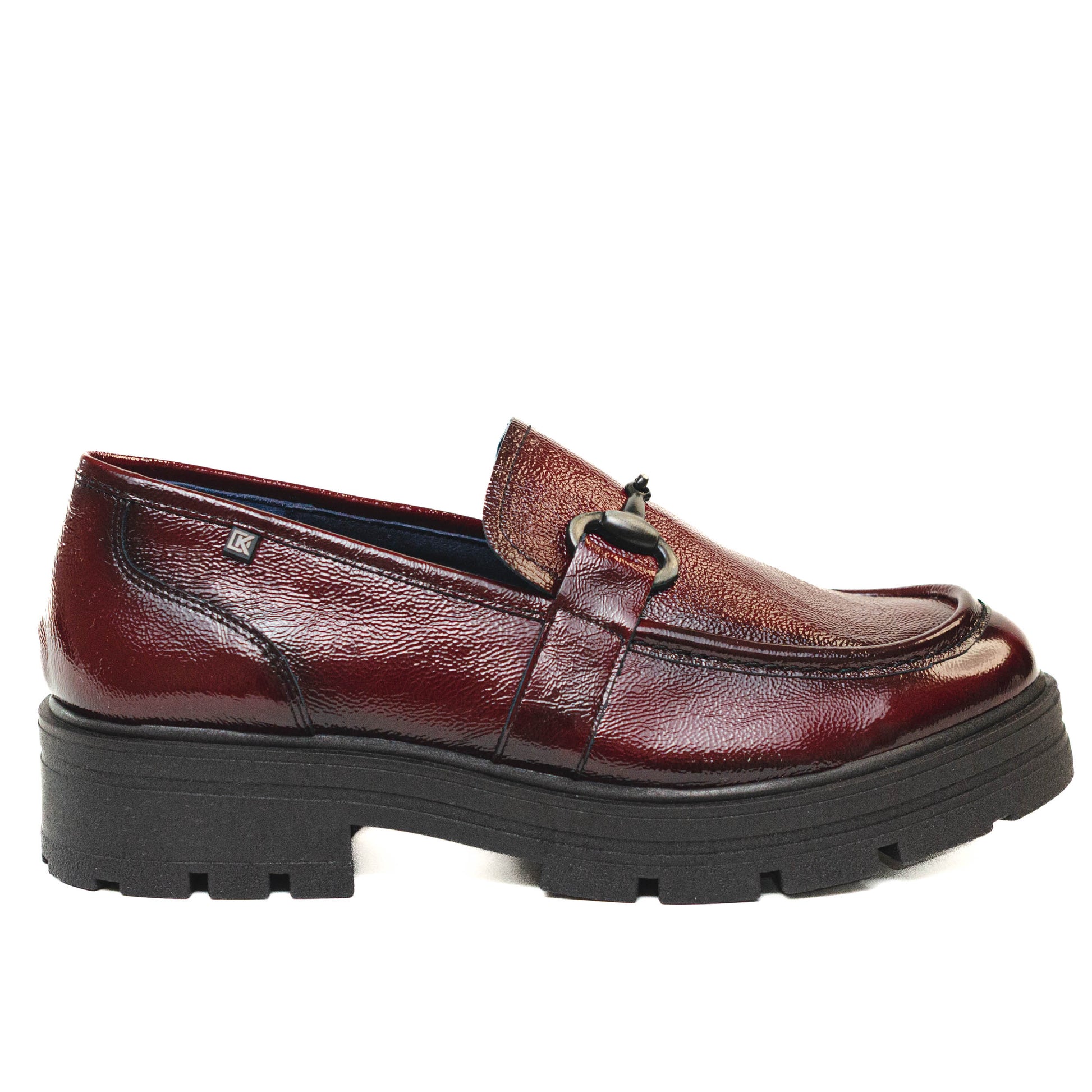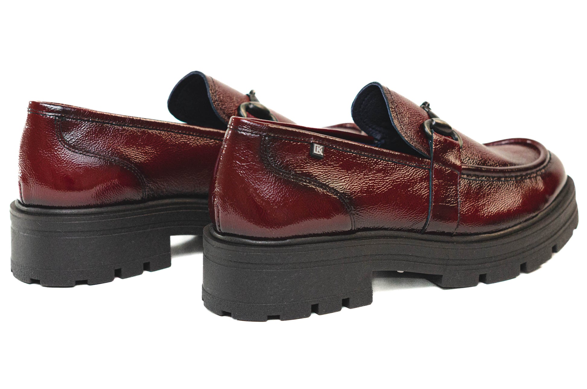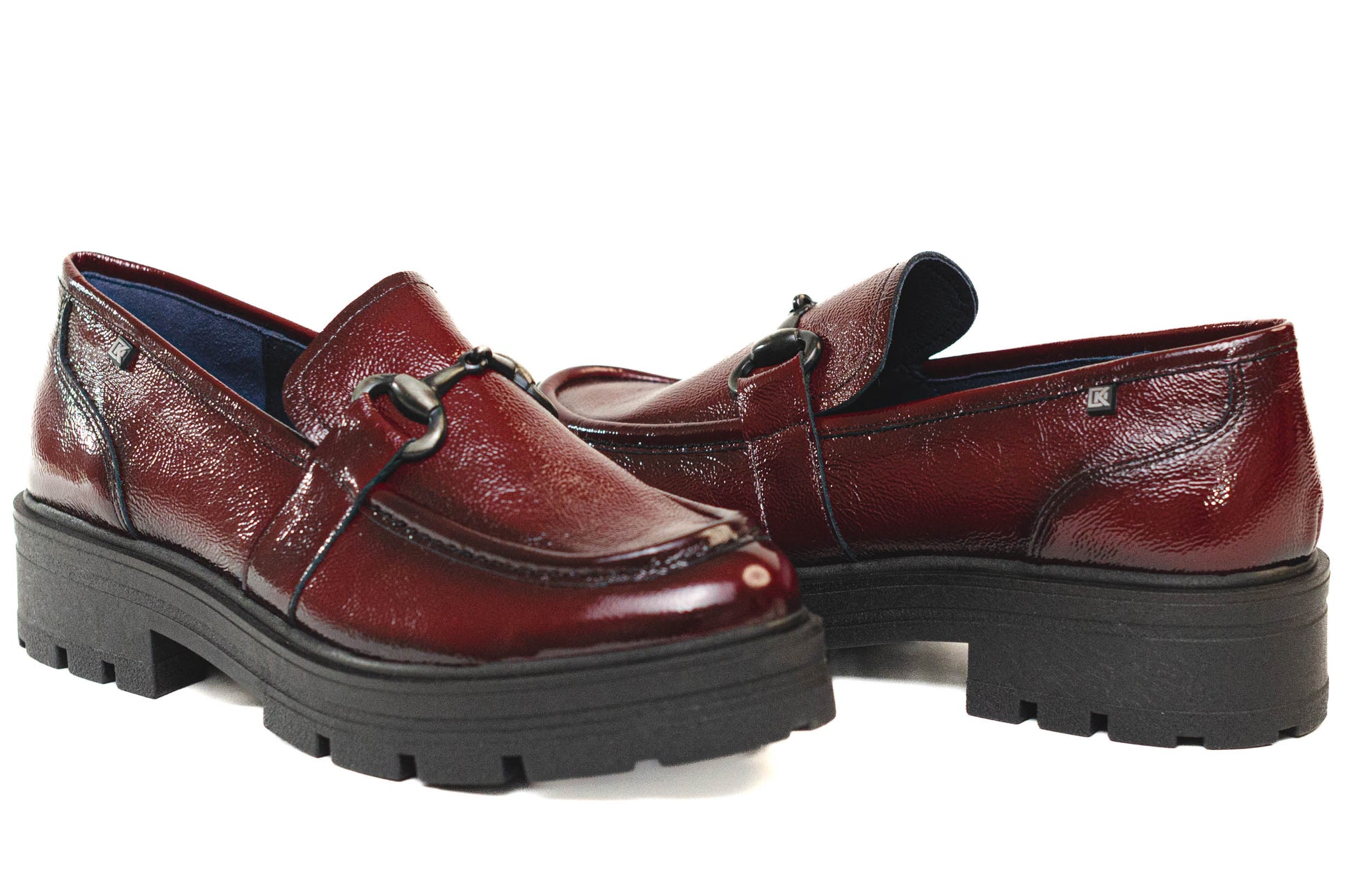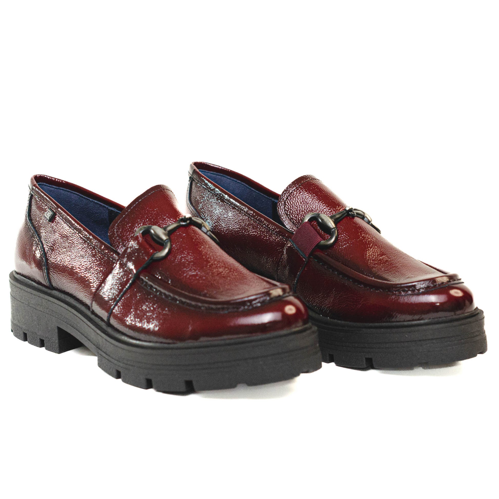 Dorking Escorpio, mocasin estilo nautico en piel acabada en charol color burdeos, es un mocasin que no pasa de moda con una suela antiderrapante y una hebilla en el empiene.