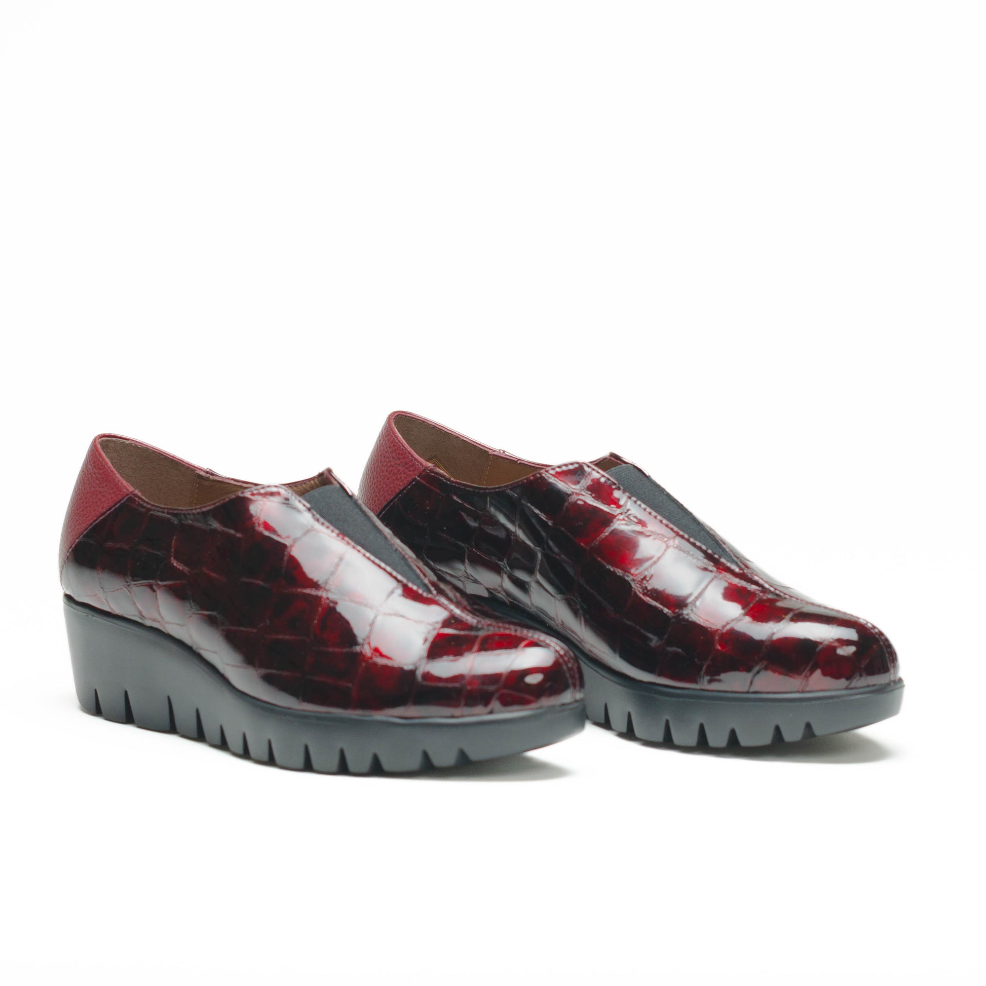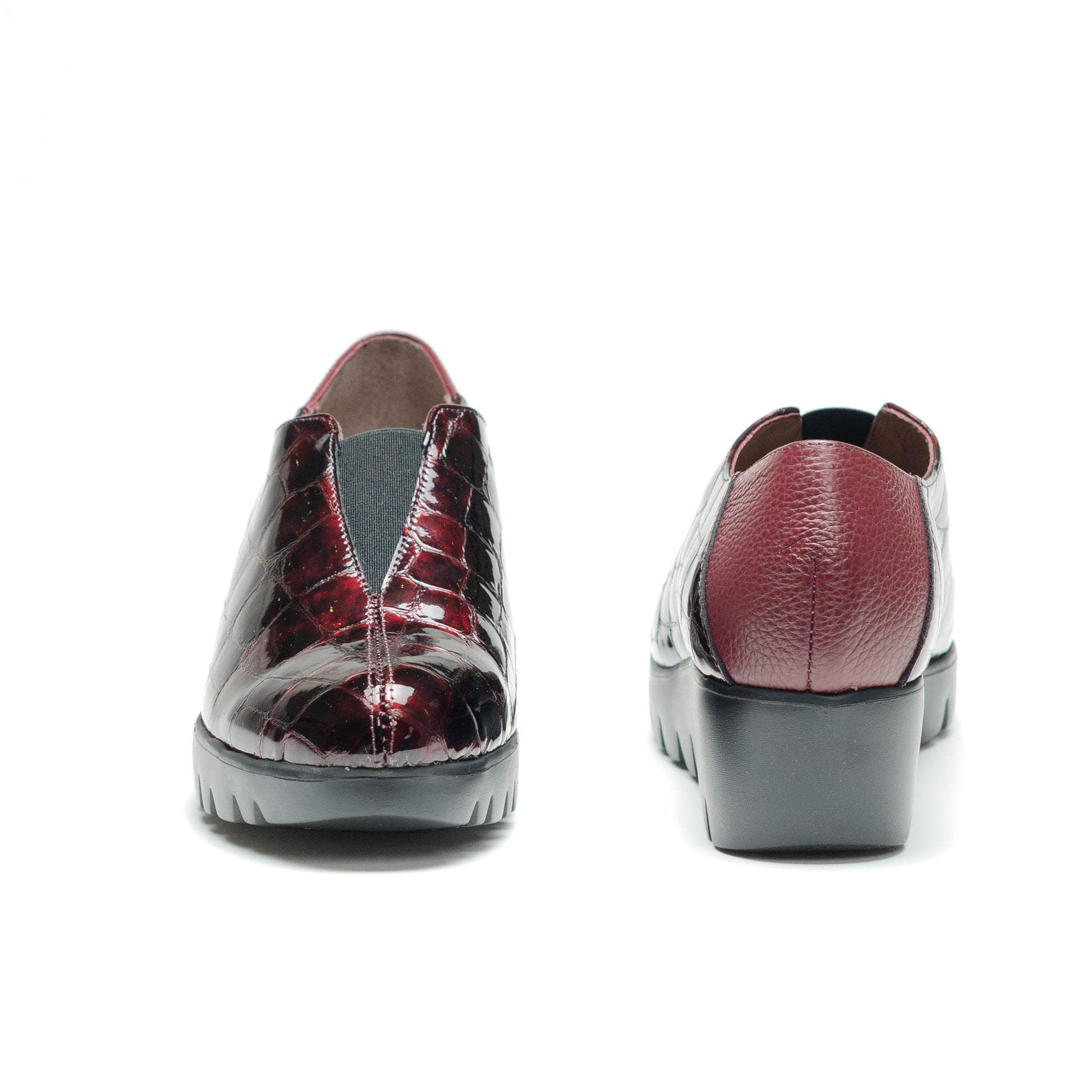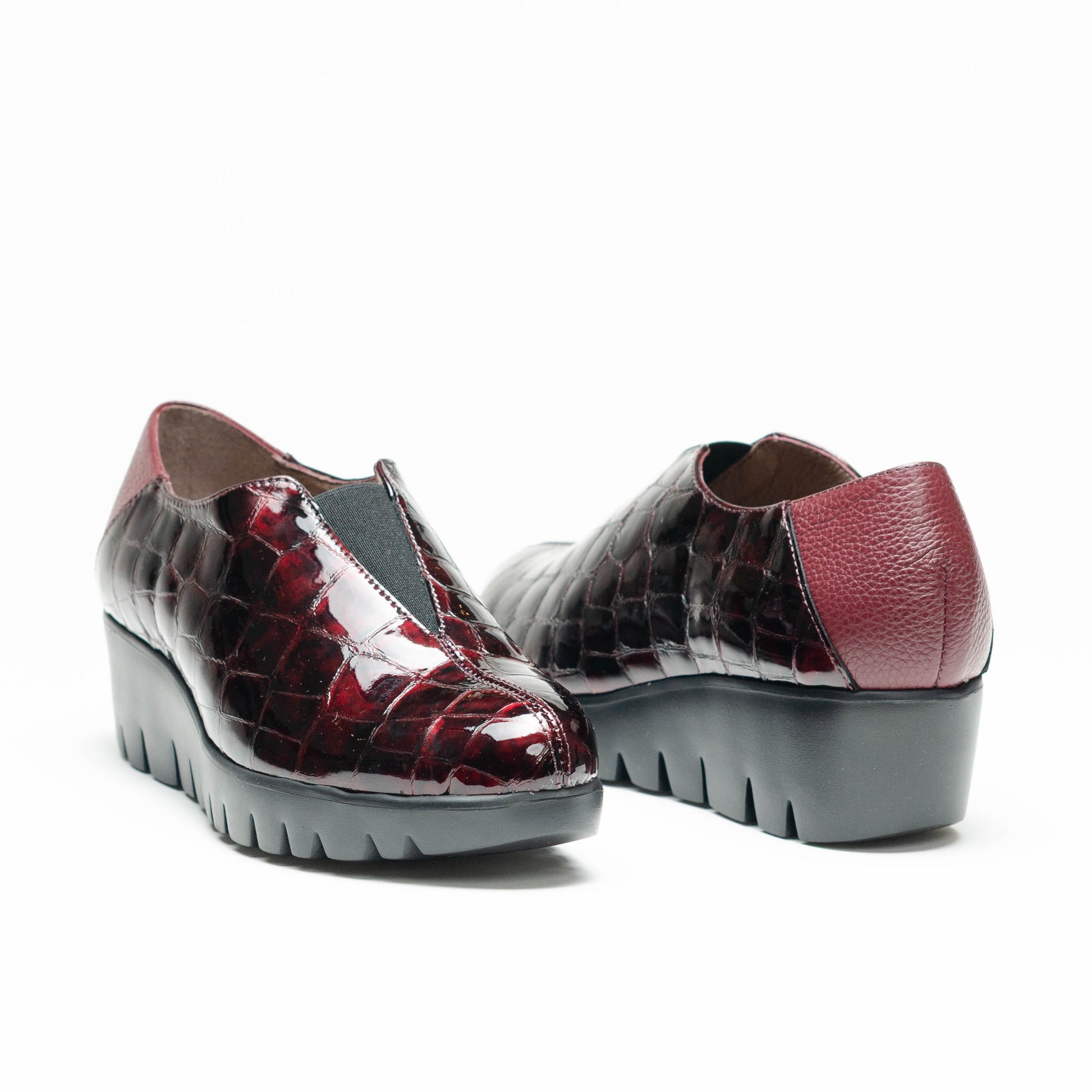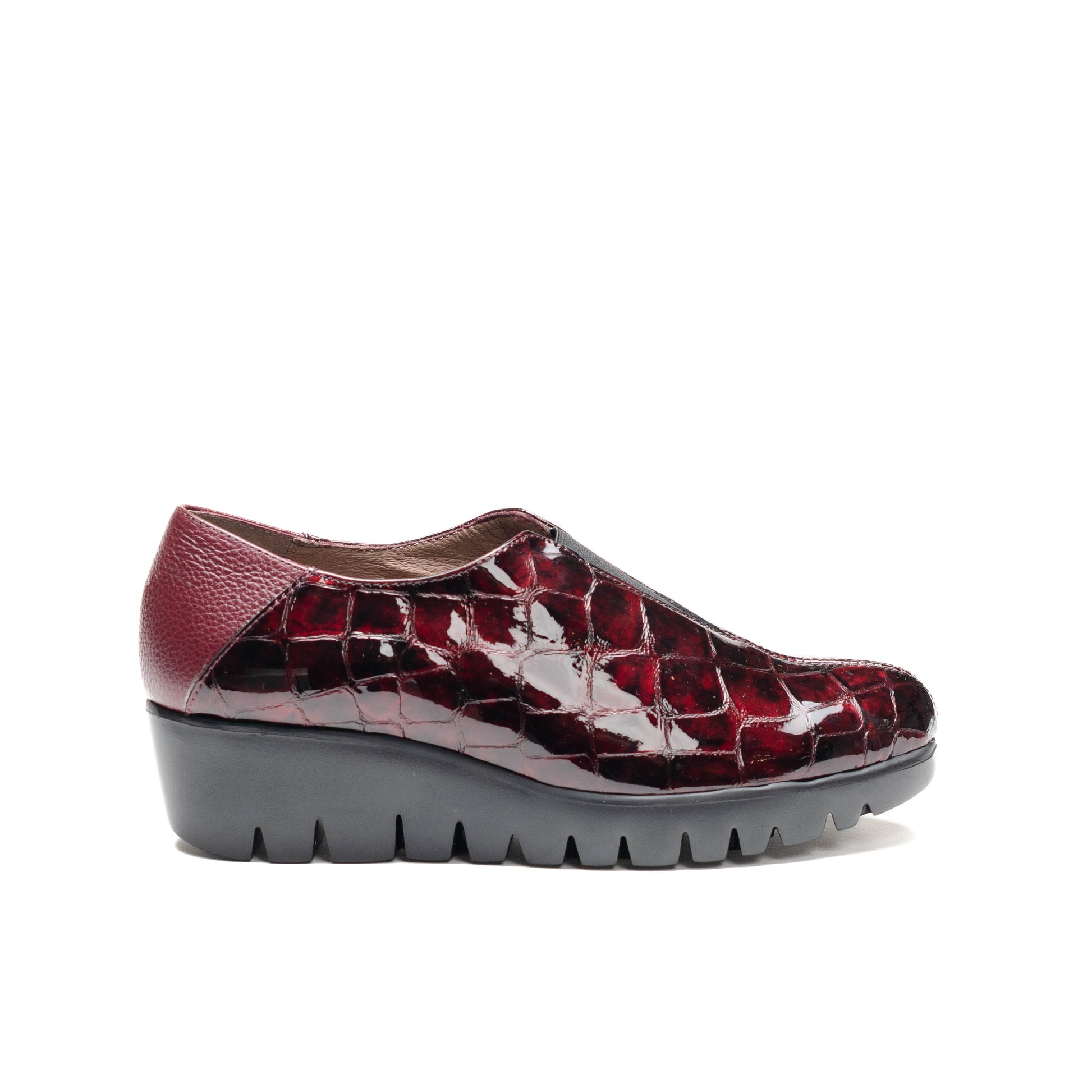 Wonders Escorpio, Zapato slip-on FLY 40 confeccionado en piel croco color vino. Un diseño de líneas limpias que combina elegancia y comodidad gracias a su pala cerrada, y a su escote en V rematado con elástico central para un calce más práctico y adaptable. La parte trasera, en piel a tono, aporta contraste y profundidad al diseño monocromático. Su suela, creada con tecnología WondersFly™ by XL EXTRALIGHT®, garantiza una ligereza excepcional y un confort extraordinario. Además, la plantilla interior de MemoryGel se adapta perfectamente al pie, proporcionando comodidad en cada paso. Prepárate para sentir la sensación #YesWeFly. Wonders apuesta por una fabricación responsable avalada por LEATHERWORKINGGROUP.