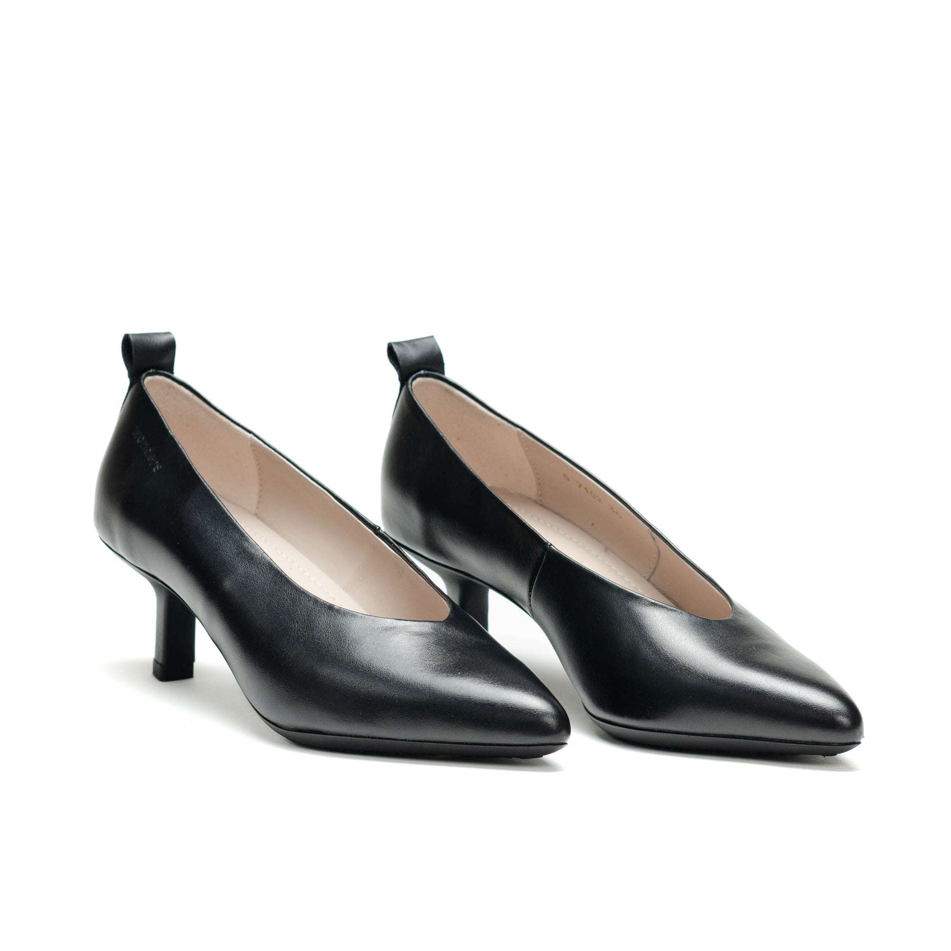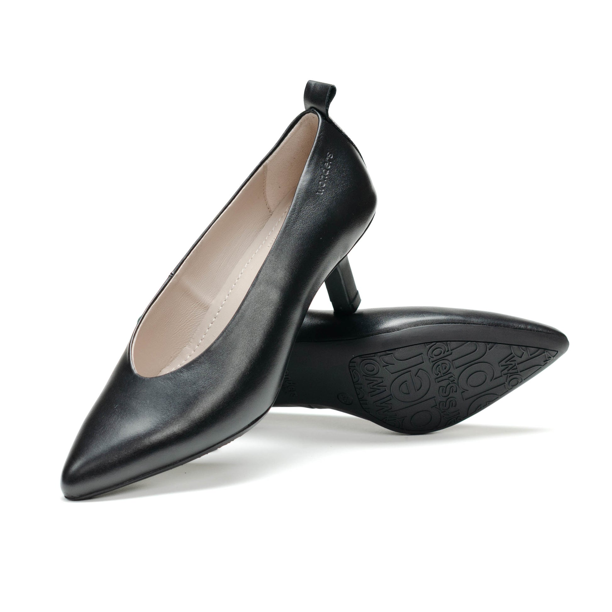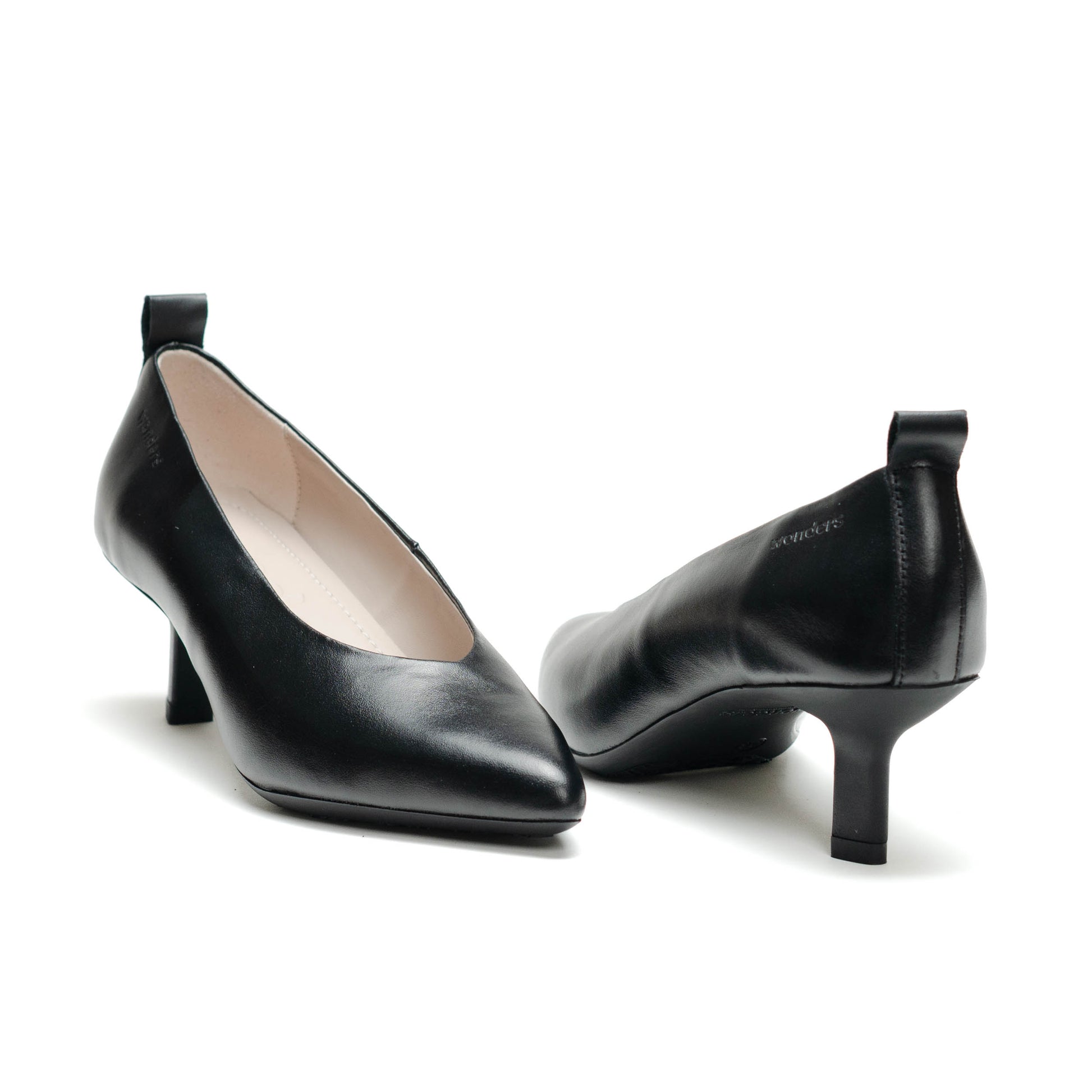 Wonders Escorpio, Zapatos de salón FLEXFIT02 fabricados en piel lisa negra. Diseño clásico y atemporal, con puntera puntiaguda. En este modelo destaca nuestro nuevo piso en bloque con tacón kitty, hecho de tpu flexible aporta un extra de comodidad al modelo. Además combinado con la plantilla interior de MemoryGel, asegura una comodidad excepcional en cada paso. #madewithloveinSpain Wonders apoya la fabricación responsable vía LEATHERWORKINGGROUP.