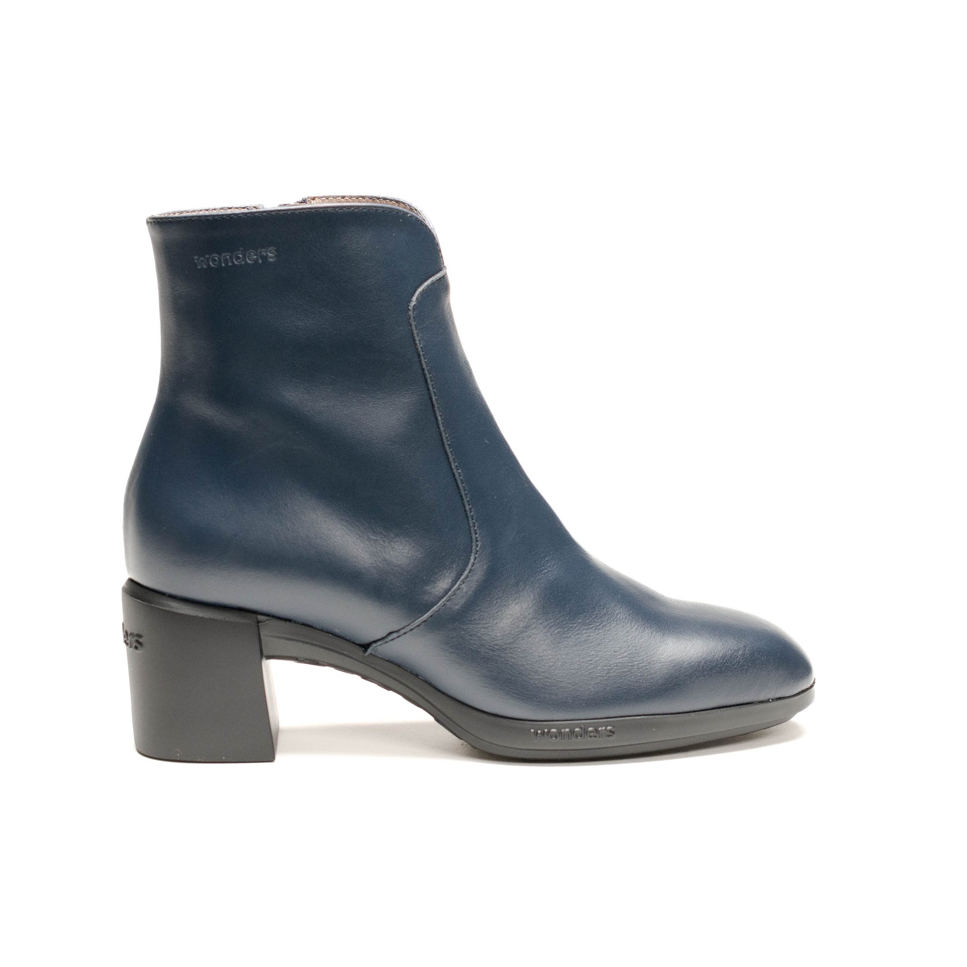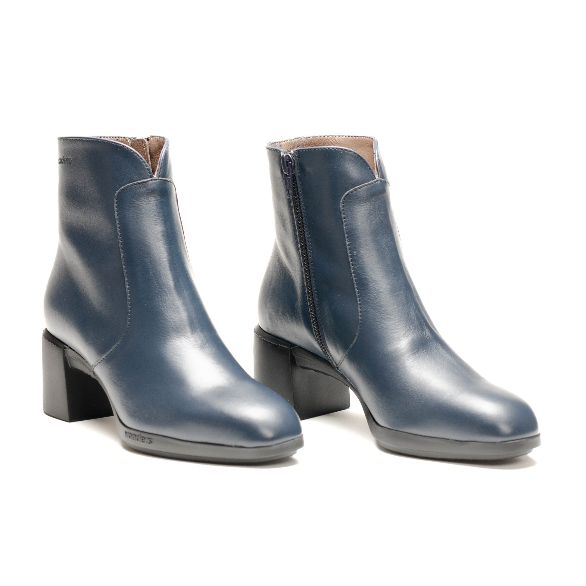 Wonders Escorpio, Botines REGHOST 05 confeccionados en piel lisa negra. El modelo REGHOST 05 tiene diseño minimalista y polivalente, destaca la parte frontal de la caña en forma de “V” y su cierre mediante cremallera lateral. Su nueva suela con tacón ha sido desarrollada con tecnología WondersFly™, que asegura una ligereza incomparable, mientras que la plantilla interior de MemoryGel garantiza comodidad en cada paso. Prepárate para la sensación #YesWeFly. Wonders apoya la fabricación responsable avalada por LEATHERWORKINGGROUP.